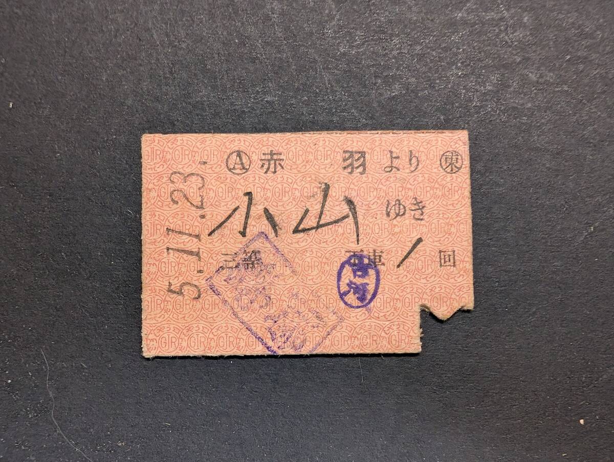 186 赤羽より小山行き 三等 下車1回 昭和5.11.23 古河 学割 切符 昭和初期