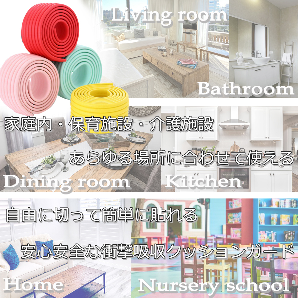 ・机や家具、オフィスや車庫など、あらゆる尖った側面や角などをガードし、接触した際の怪我やキズ防止に役立ちます。