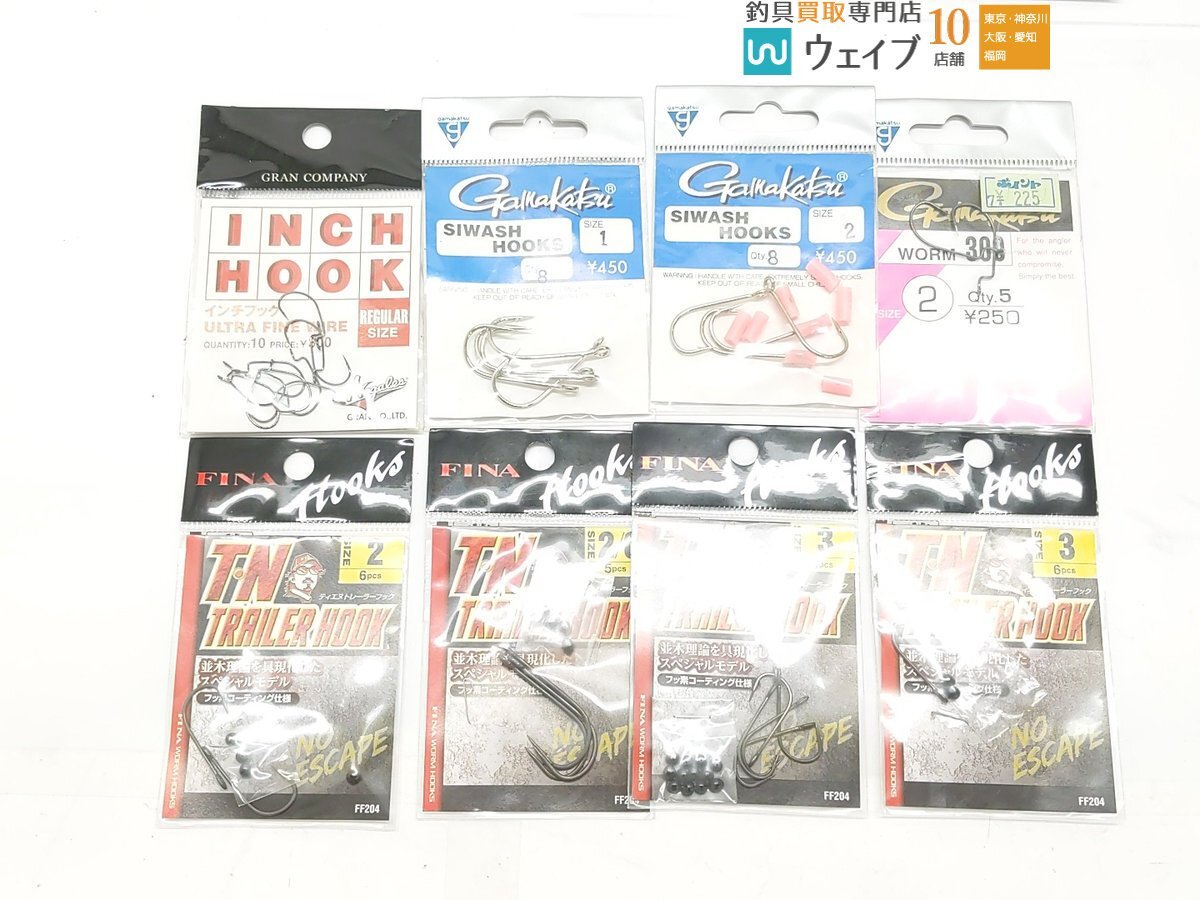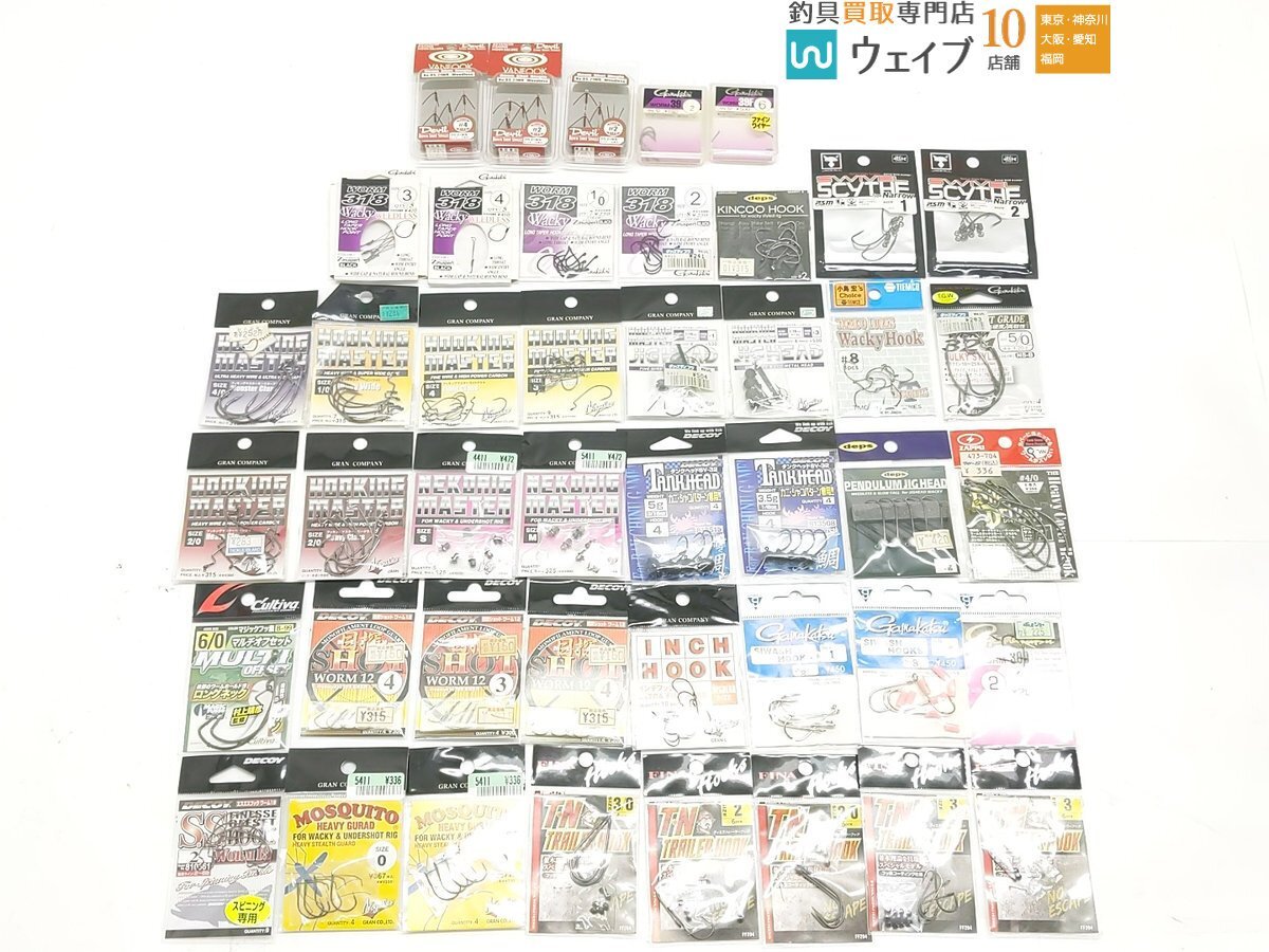 | 商品名 | ヴァンフック ダウンショットシングル、ジャッカル 粋バルサイスタイプナロー、がまかつ ワーム318 等 フック用品 計50点程度 |