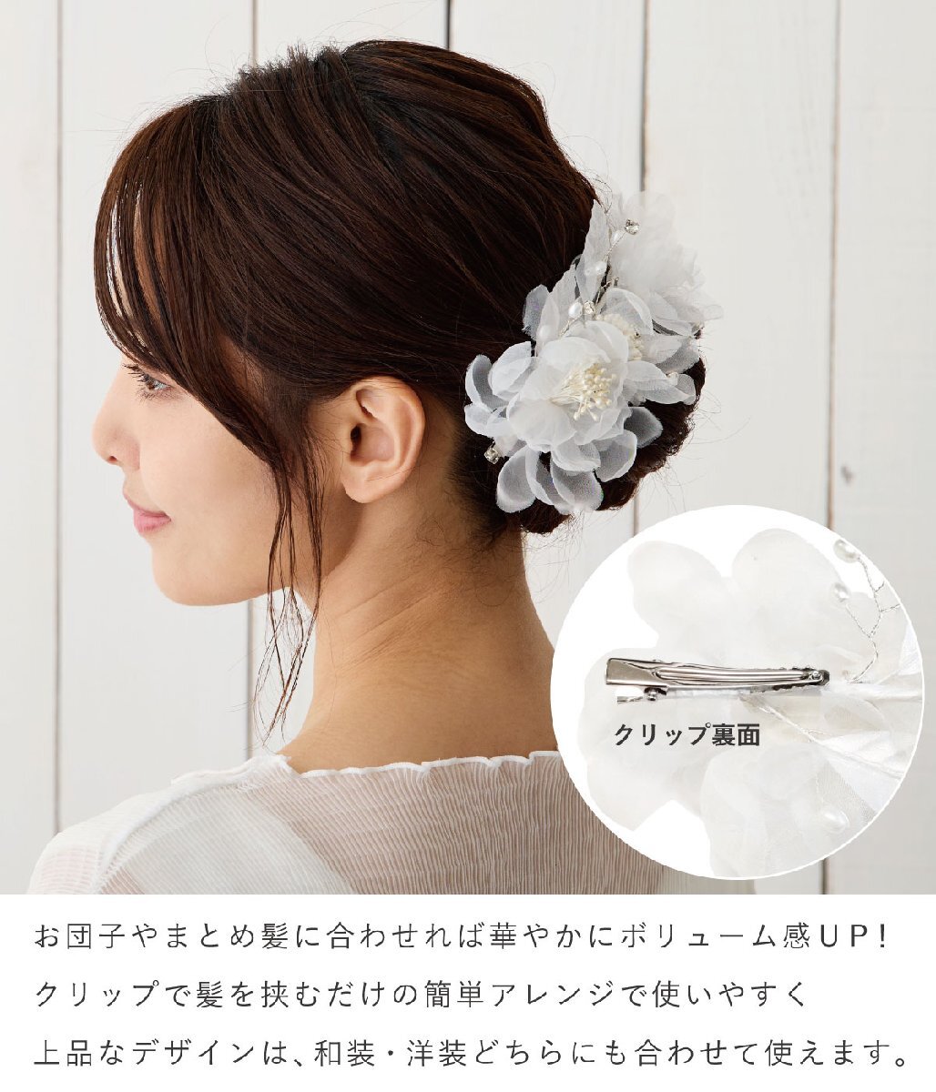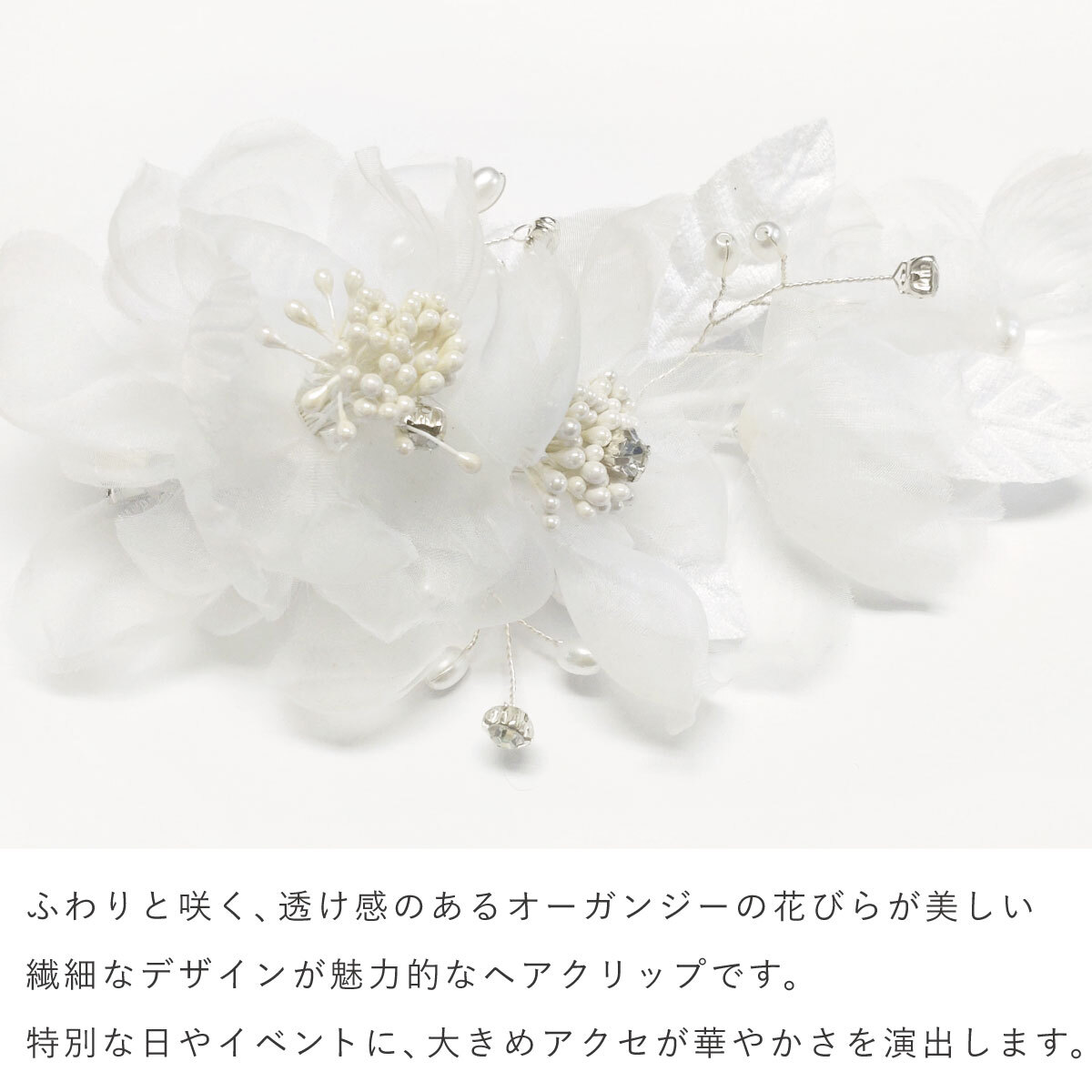 | 品名 | オーガンジー フラワー ふんわり ヘッドアクセ ヘアクリップ 豪華 大きめ ヘアピン 花 透け感 簡単 まとめ髪 くちばし クリップ ha-521 白 ホワイト | |