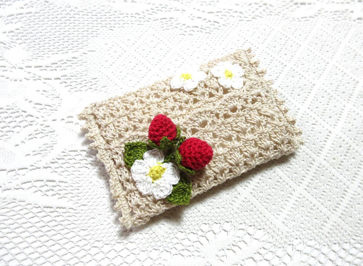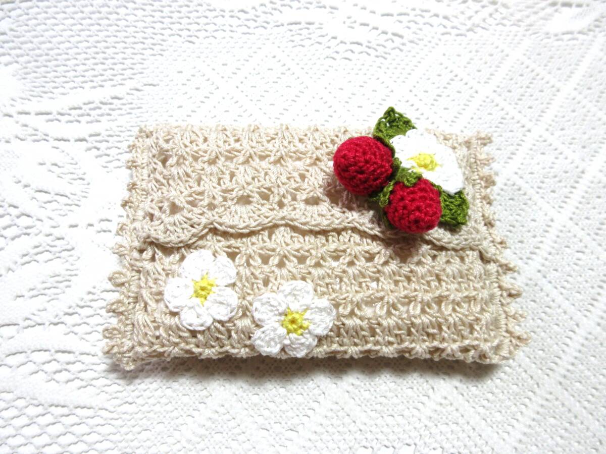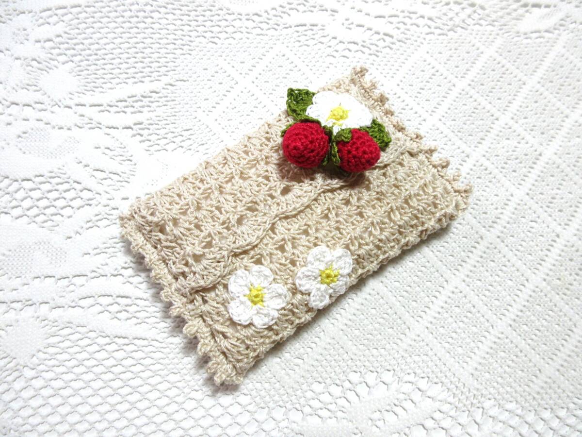 *ハンドメイド*手編み*レース編み*イチゴのポケットティッシュカバー*