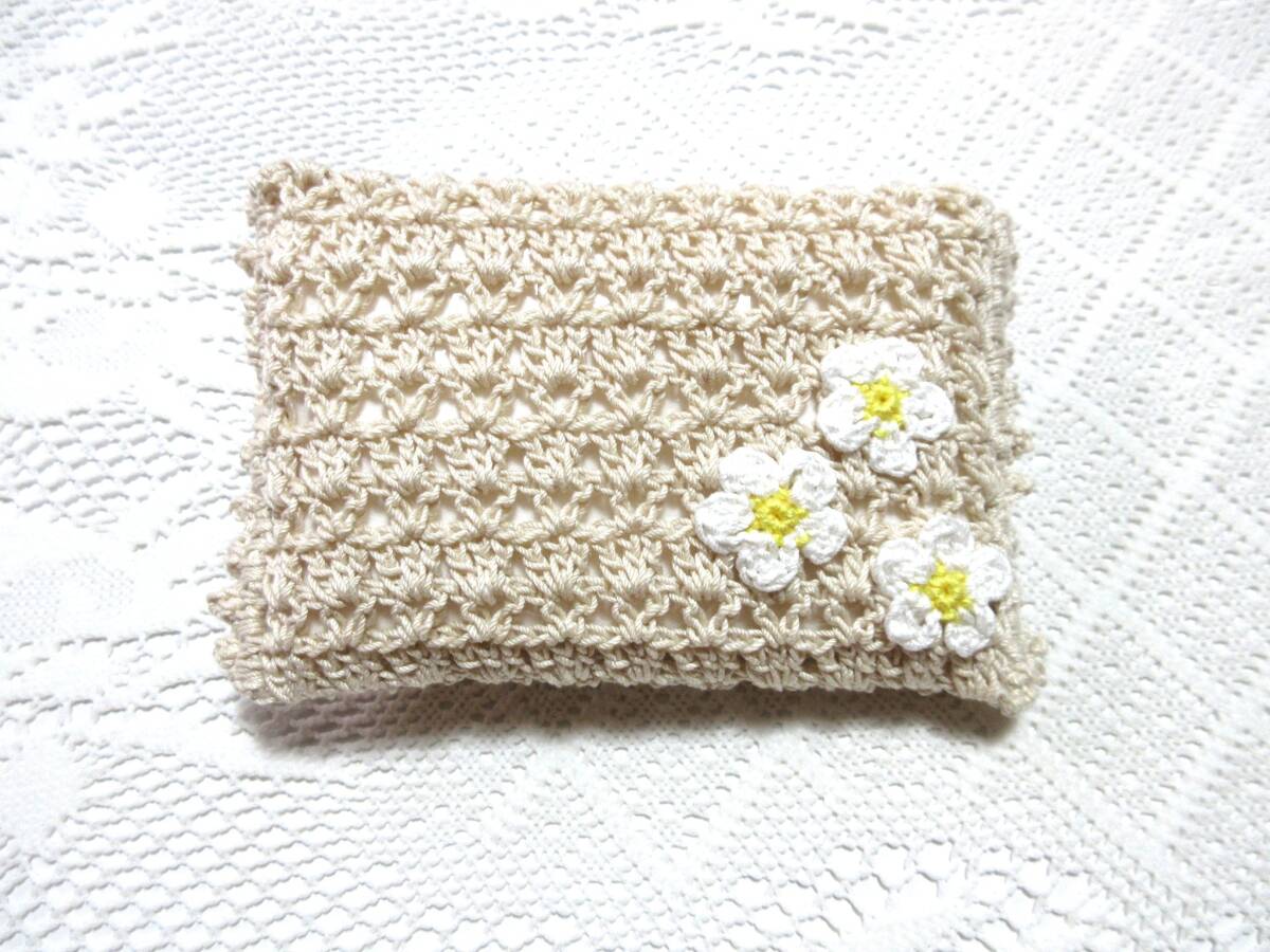 クリームベージュの本体にイチゴを飾ったポケットティッシュカバーです。