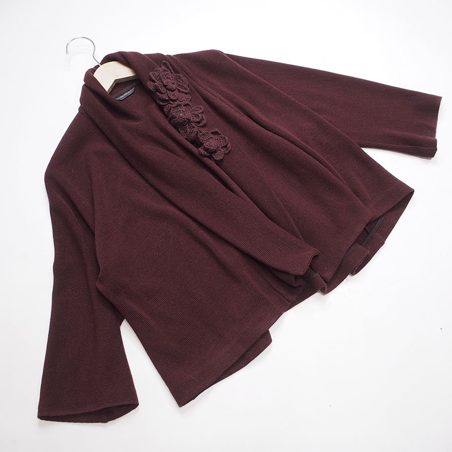 ワインカラー 花モチーフ使い ボレロ カーディガン