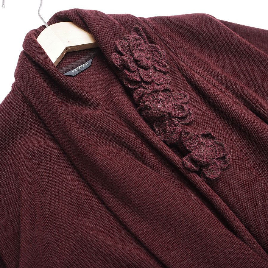 【送料無料】インゲボルグ ワインカラー 花モチーフ使い ボレロ カーディガン/フリーサイズ/K25A61