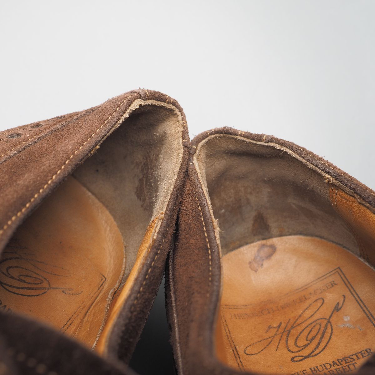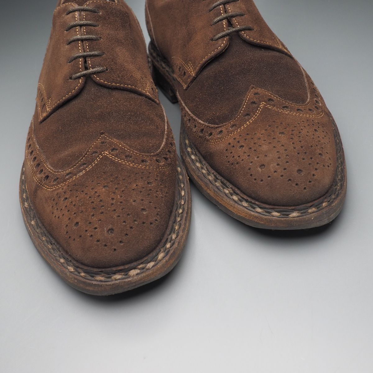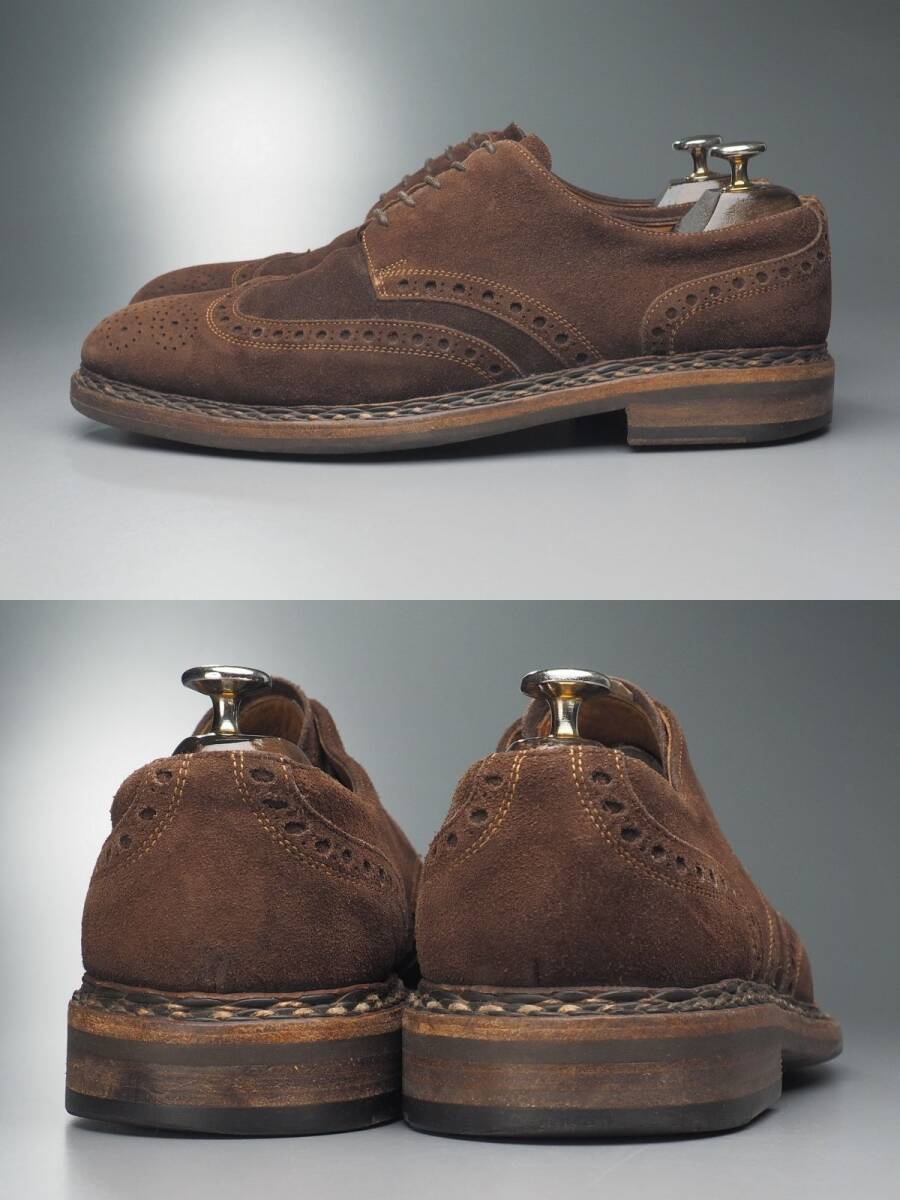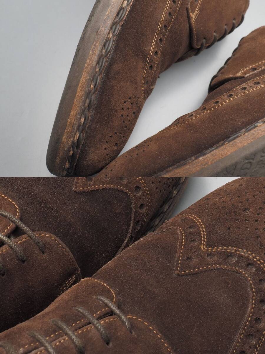 靴のロールスロイスとも称されるドイツの老舗名門高級靴ブランド「ハインリッヒディンケラッカー/Heinrich Dinkelacker」の一足です。 茶のスウェード革をアッパーに用いたフルブローグの5アイレットダービー。 アウトソールはダブルソール仕立て、底付けにはノルウェイジャン製法を採用し、重厚感のあるタフな仕上がりとなっております。 製法:ノルウェイジャン アウトソール:ラバー ライニング:レザー ※撮影用のシューキーパーは付属致しません。 ※本物の商品ですのでご安心の上オークションをお楽しみ下さい。 ※タイトル頭の英数字は弊社の管理番号です。 ※ほかにも多数の商品を出品しています。 ※同梱に関しましては「まとめて取引」でのみ対応可能です、その他の方法での同梱対応は出来かねます。 (※商品の特性上、同梱対応出来ない商品もございますので予めご了承下さい。) |