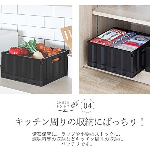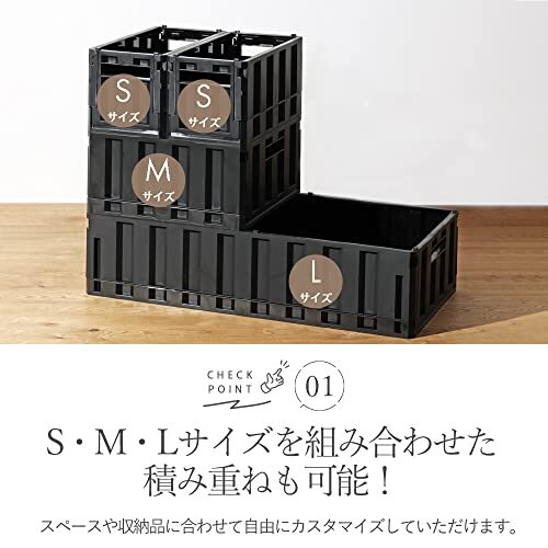 説明 限定【BLKP.シリーズ】 BLKP. the life style in BLACK. パール金属の黒でスタイリッシュに部屋を統一。 生活感の出やすいキッチングッズから収納用品、家具までを一体感ある黒で揃えられるシリーズです。 シンプルかつ実用的なデザインで女性はもちろん、一人暮らしの男性にもおすすめ。 こだわりのスタイリングで、部屋を自分好みの空間に。 製品サイズ:(約)使用時/幅28.5×奥行28.5×高さ14.5cm、収納時/幅28.5×奥行28.5×高さ3cm 製品重量:(約)0.53kg 素材・材質:ポリプロピレン(耐熱温度100度) 生産国:日本 耐荷重:(約)6kg(1個使用時) サイズ違いも積み重ねできる!折りたたみ式コンテナ。 水や非常食の備蓄保管に、キッチンペーパーやラップのストックに、調味料等の収納に…スタッキングして使えるので、場所を取らずに収納できます。 S・M・Lサイズを組み合わせた積み重ねも可能!スペースや収納品に合わせて自由にカスタマイズしていただけます。 キッチン周りはもちろん、リビングや子ども部屋、玄関や車に置いても使えます! 使わないときは折りたたんでコンパクトに!厚さ(約)3cm~4.5cmにまで薄くなるので、家のデッドスペースにも収まります。 安心の日本製です。 ご注意:組立の際は、四方の角をカチッと音がするまでしっかりはめてご使用ください。 耐荷重以内でご使用ください。