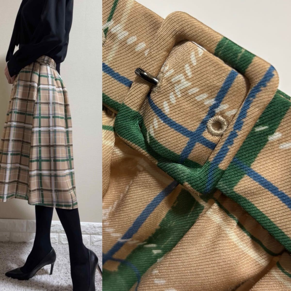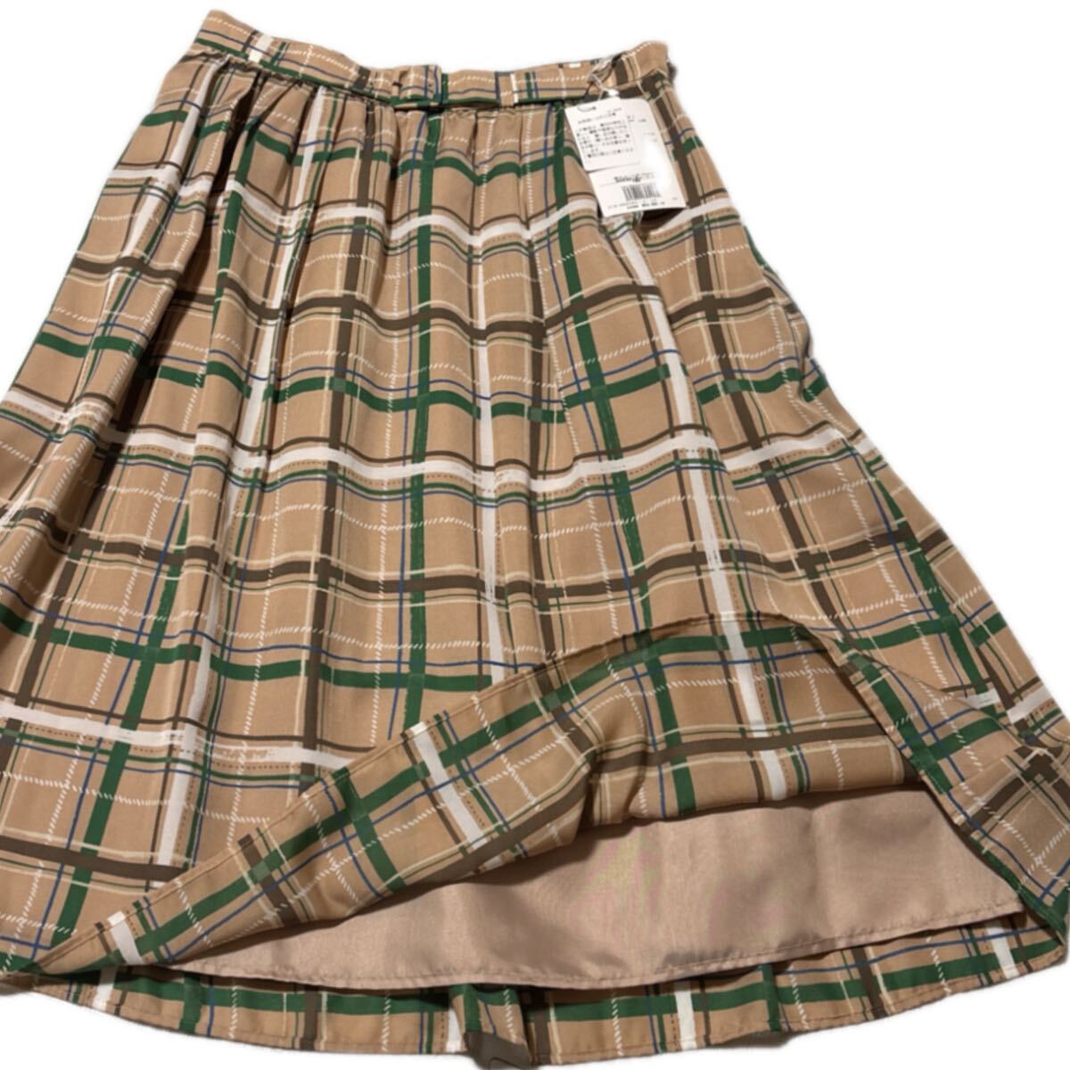 さらさら揺れるジョーゼット生地を使用したウエストベルト風チェックフレアスカートです