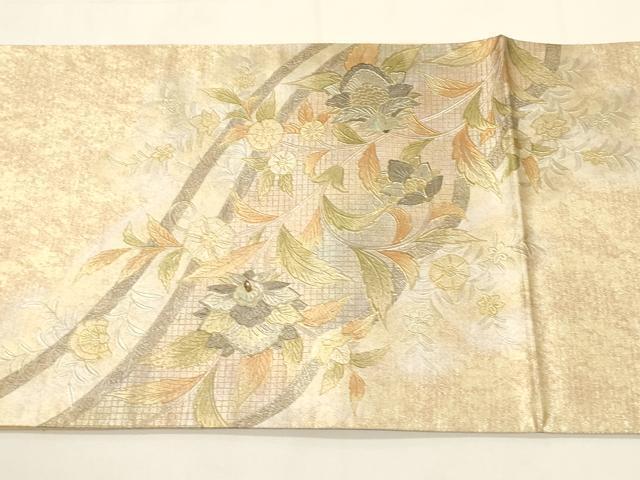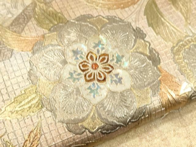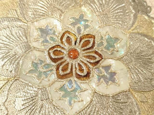 | 【正絹・未使用・芯なし】 状態は一度も締めておらず 特に目立ったシミ汚れなどもなく大変良い状態です。 「螺鈿(らでん)」は、 貝殻の内側の真珠層を薄く切り出して、はめ込む手法です。 奈良時代に唐から螺鈿の技術が輸入されて以来、 真珠層が光線によって、青色やピンク色などの優しい光を放ち、 自然な非規則性が神秘的で日本人の心を惹きつけてきました。 丁寧に、精密に織り出された源氏物語・・・ 実に多彩な彩りは、螺鈿のみ表現できる美しさ 織り螺鈿金細工の染などでは表現できない、 貝殻の持つ自然な光沢がとても美しく、優雅さと華やかさを添えます。 大変上質な逸品になります。 お安く出品致しますので、是非この機会にいかがでしょうか?