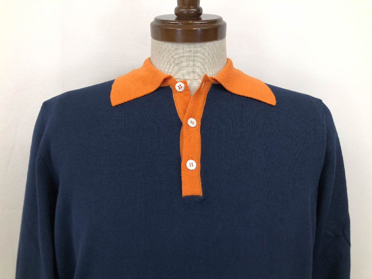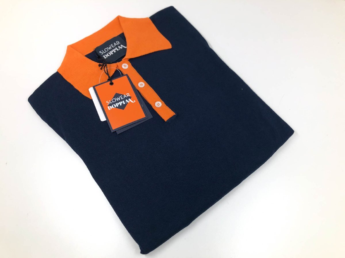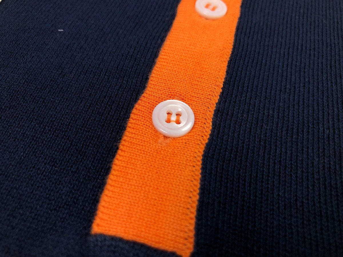 未使用【スローウエア×ドッピアアー】79SW08 SW811 820 定価54450円 長袖ニットポロシャツ(メンズ)44 紺×オレンジ バイカラー◇10ZZN0792