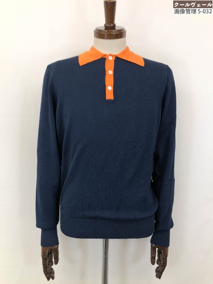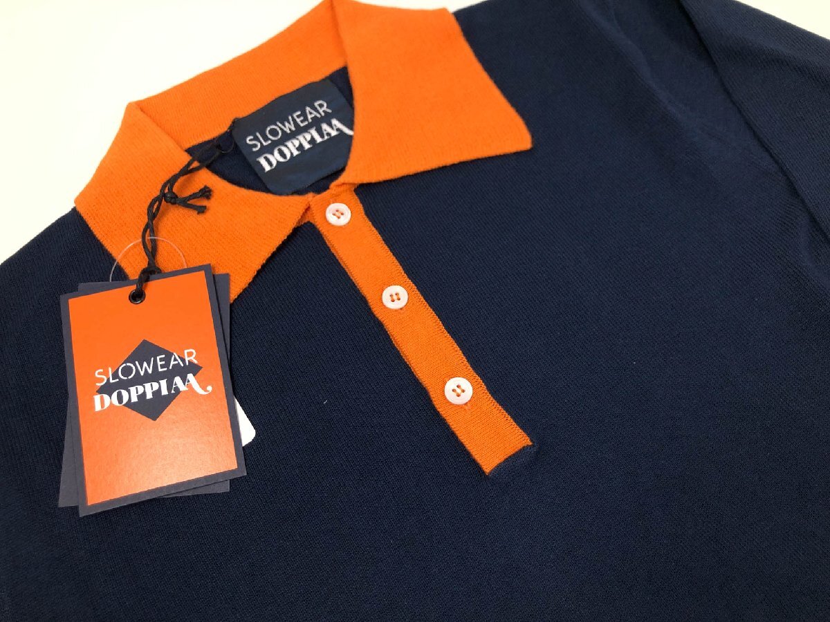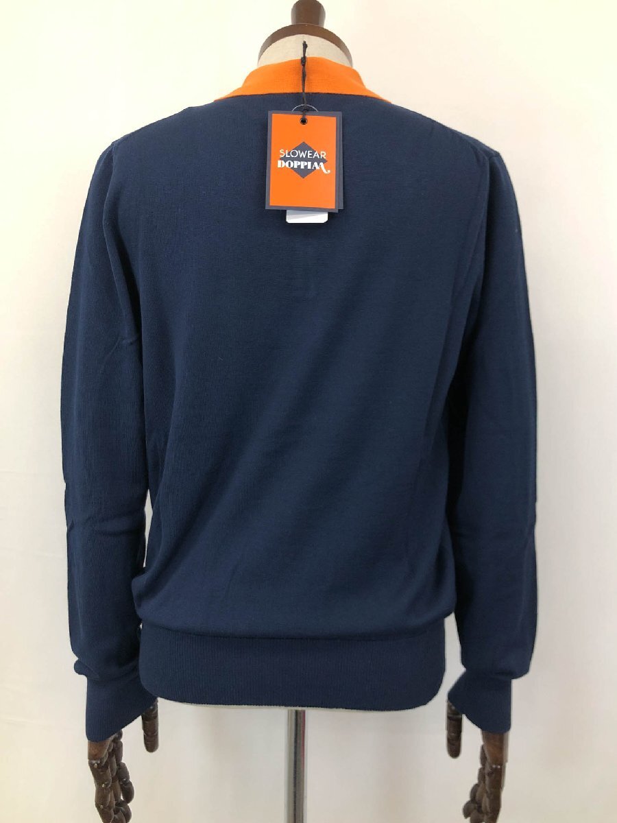 未使用【スローウエア×ドッピアアー】79SW08 SW811 820 定価54450円 長袖ニットポロシャツ(メンズ)44 紺×オレンジ バイカラー◇10ZZN0792
