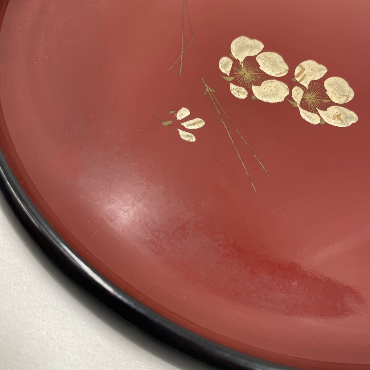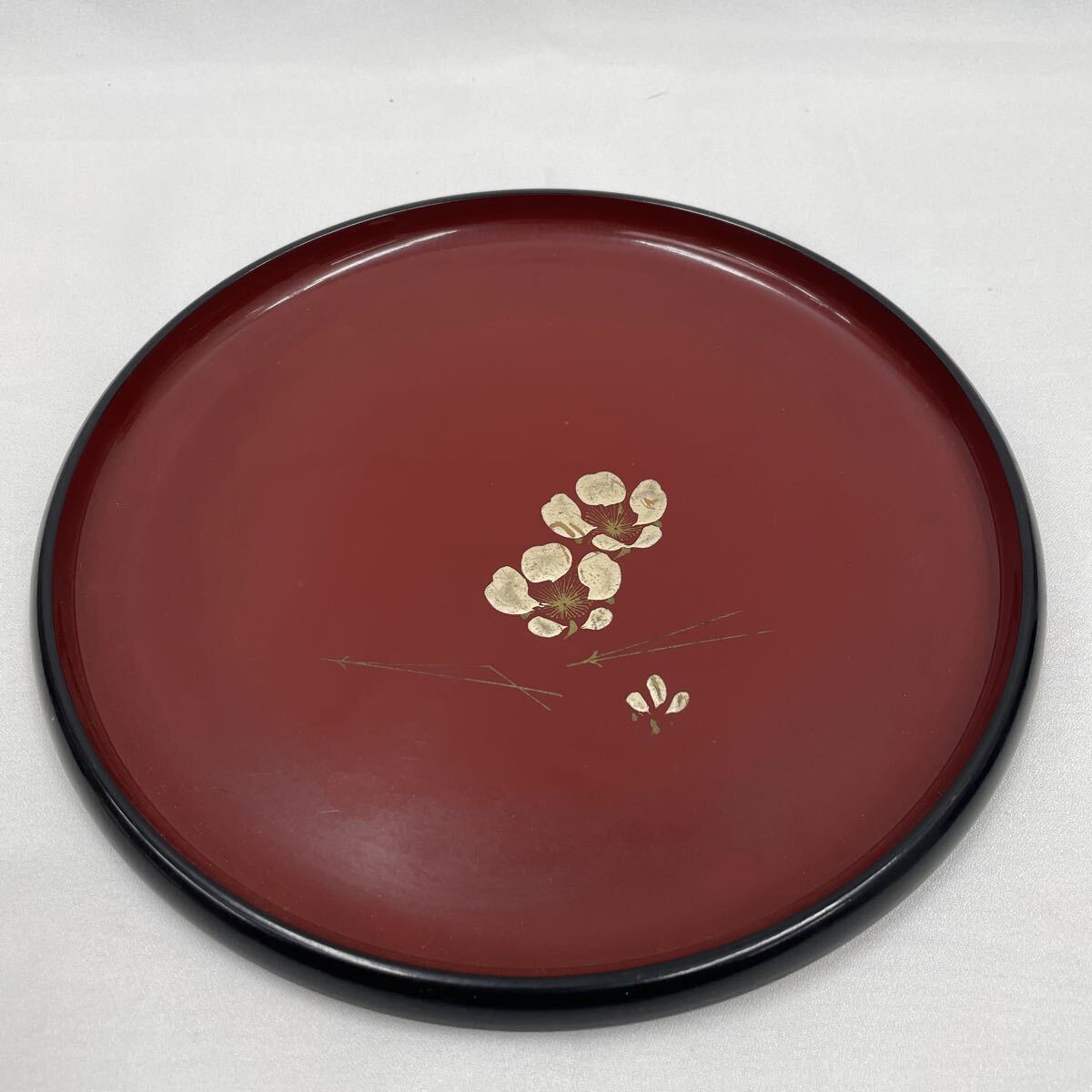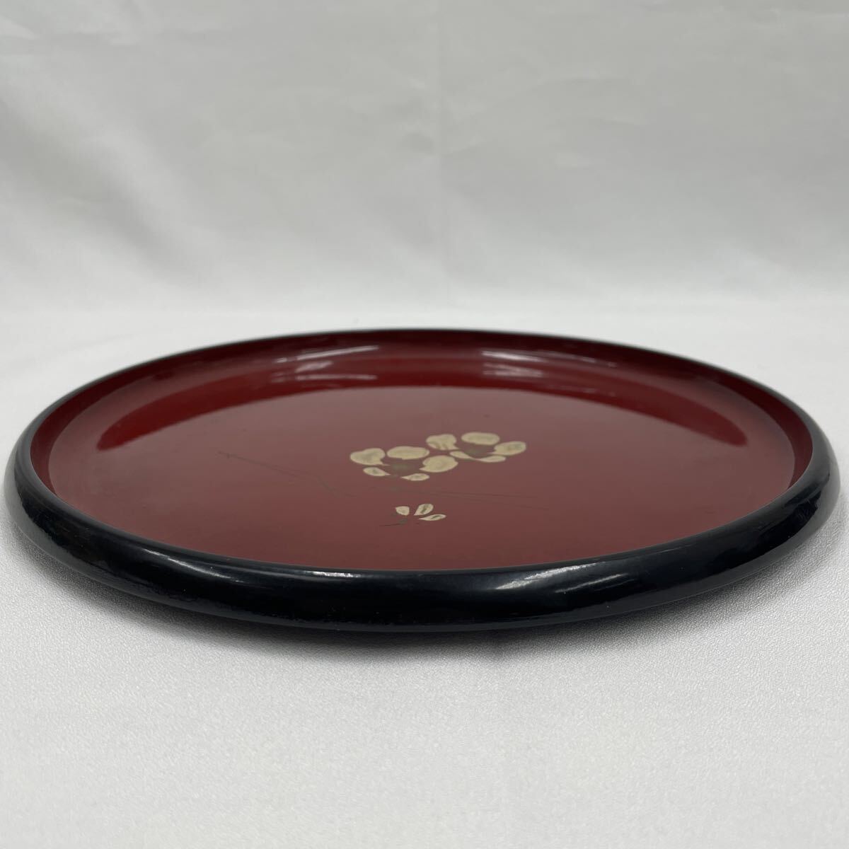 1円 お盆 丸盆 盆 菓子盆 梅 朱色 黒 菓子皿 茶器 煎茶器 食器