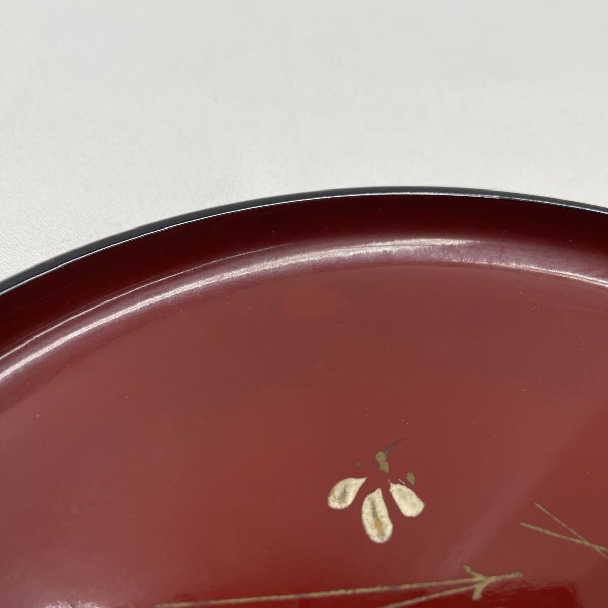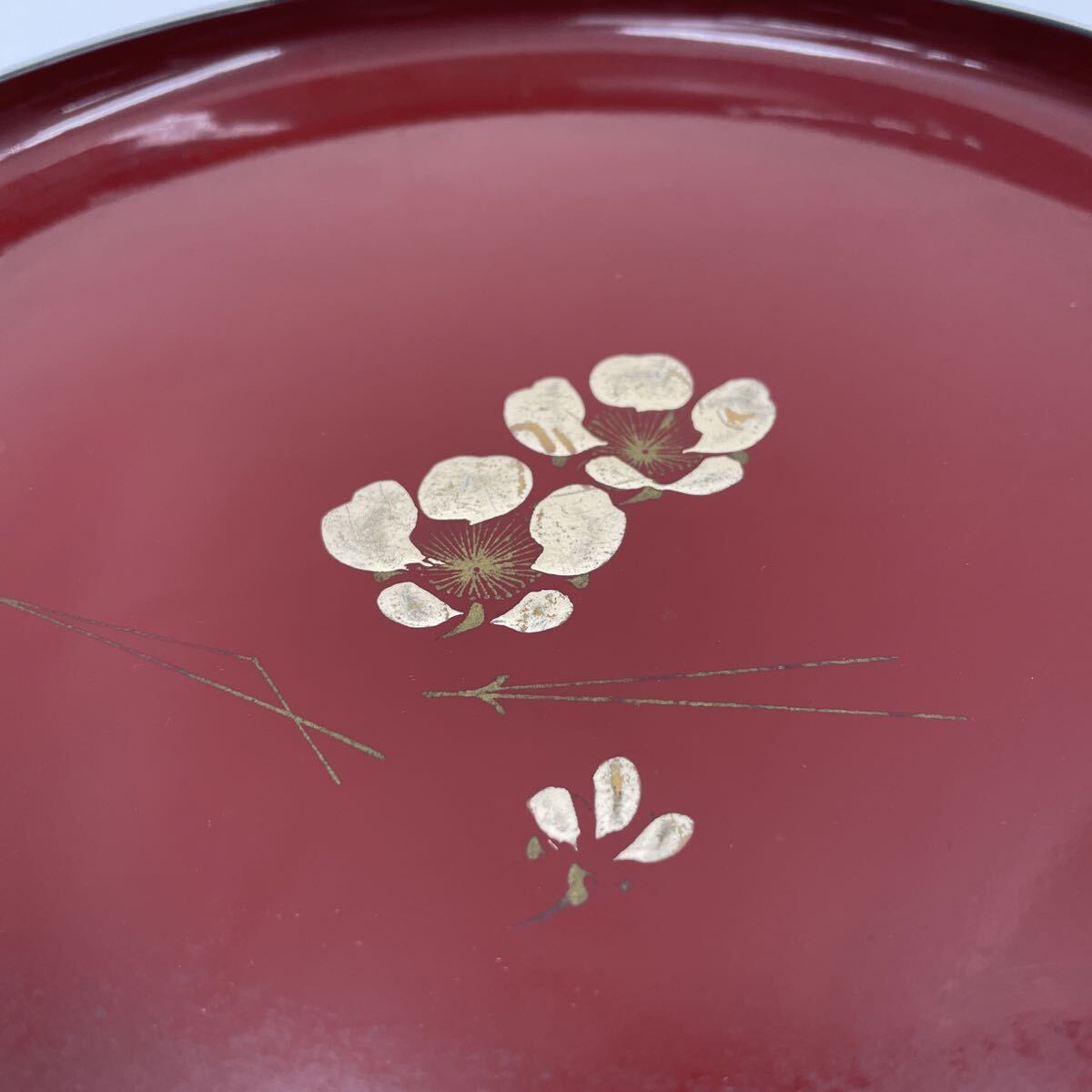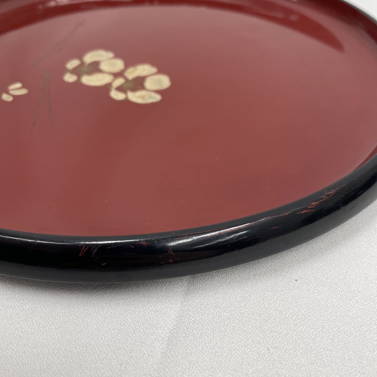 1円 お盆 丸盆 盆 菓子盆 梅 朱色 黒 菓子皿 茶器 煎茶器 食器