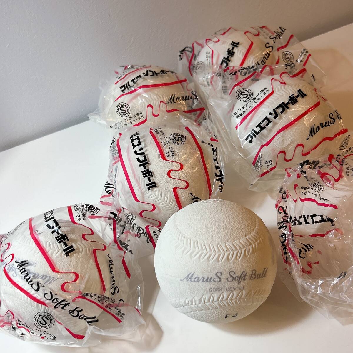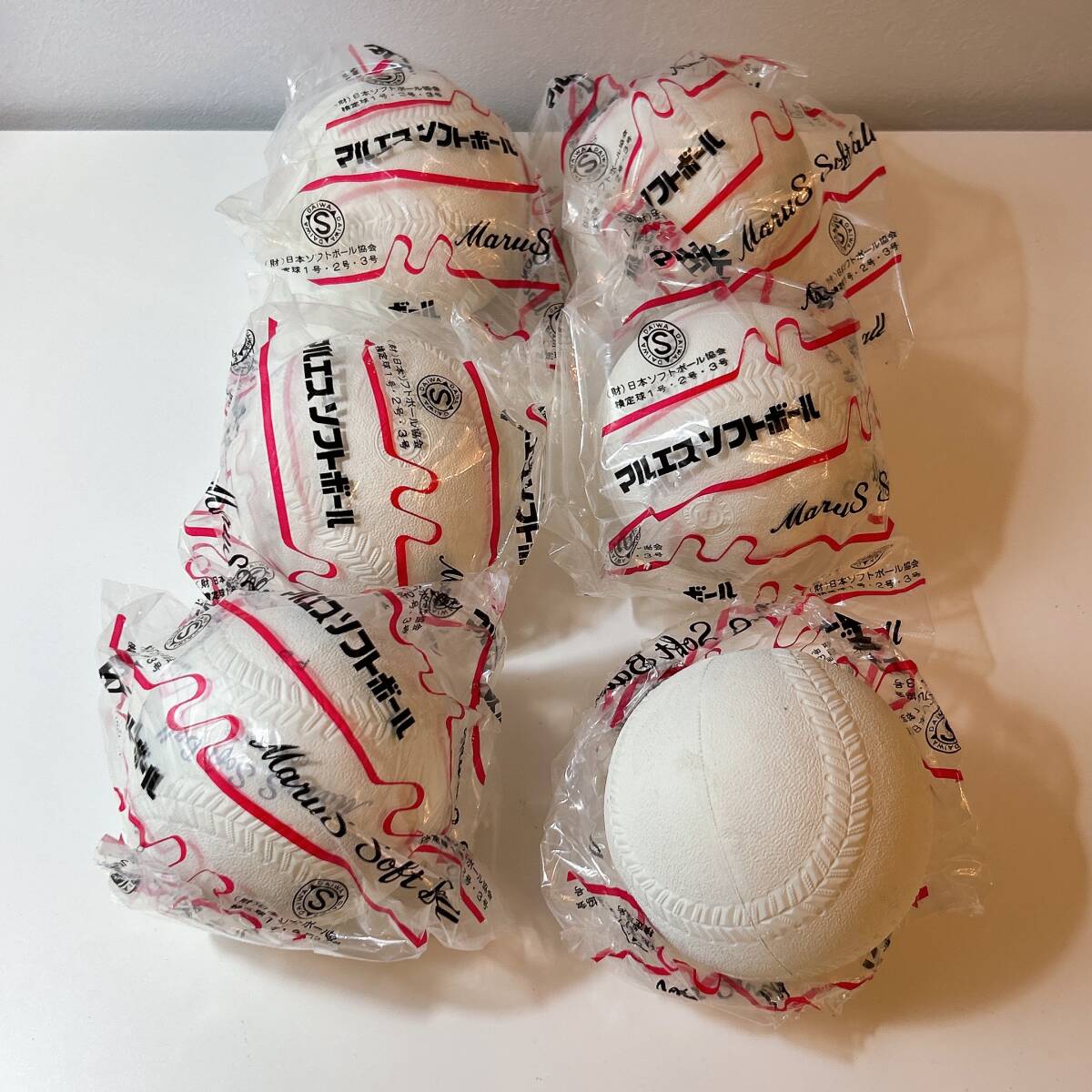 【マルエス】ソフトボール / 検定球3号 6個セット(5個未開封)/ コルク芯 未使用 スポーツ ボール | ||||