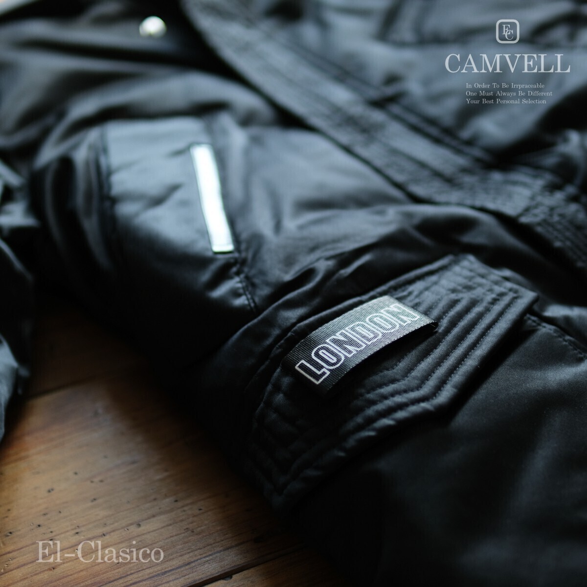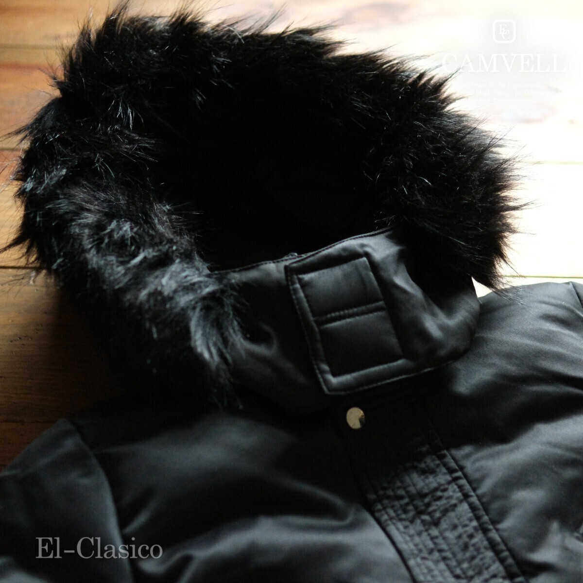 新品*英国ロンドン *CAMVELL キャンベル*ロングダウンコート ブラック M 黒 白羽毛90% 防寒 重厚 フード ファー取り外し◆CAMLONDON-BK-M