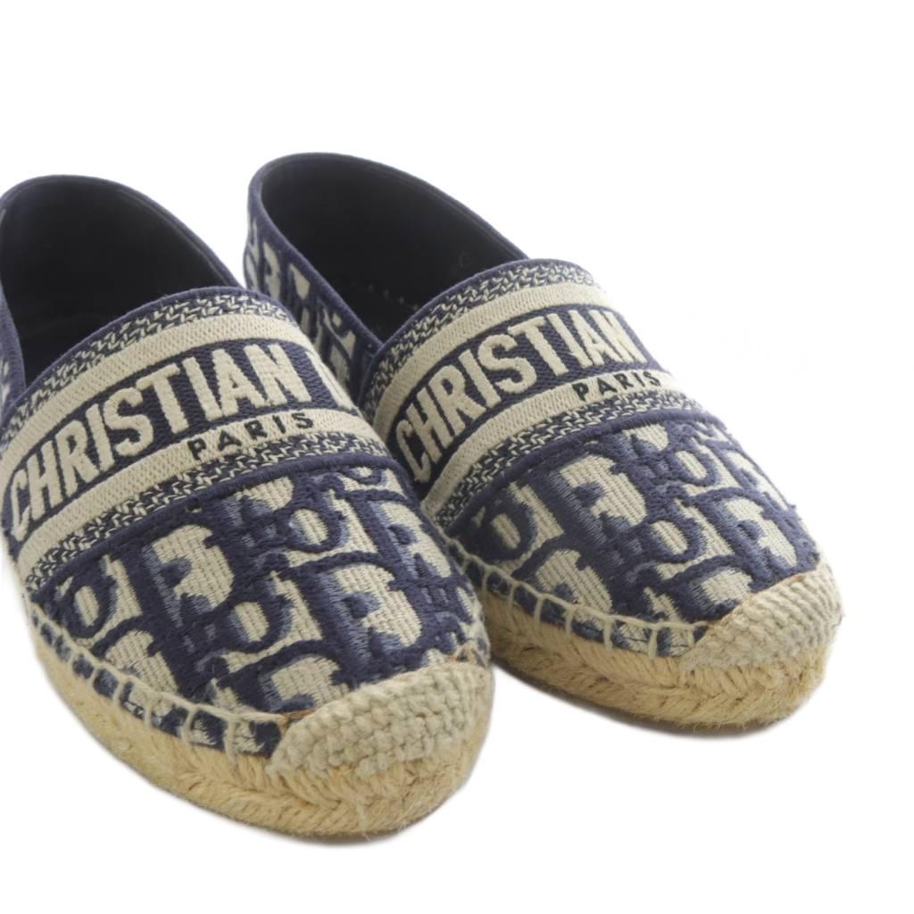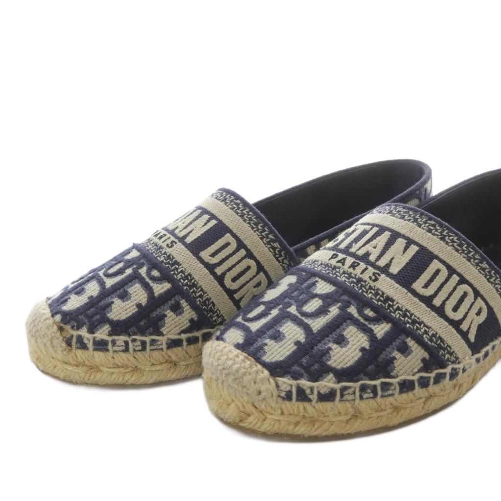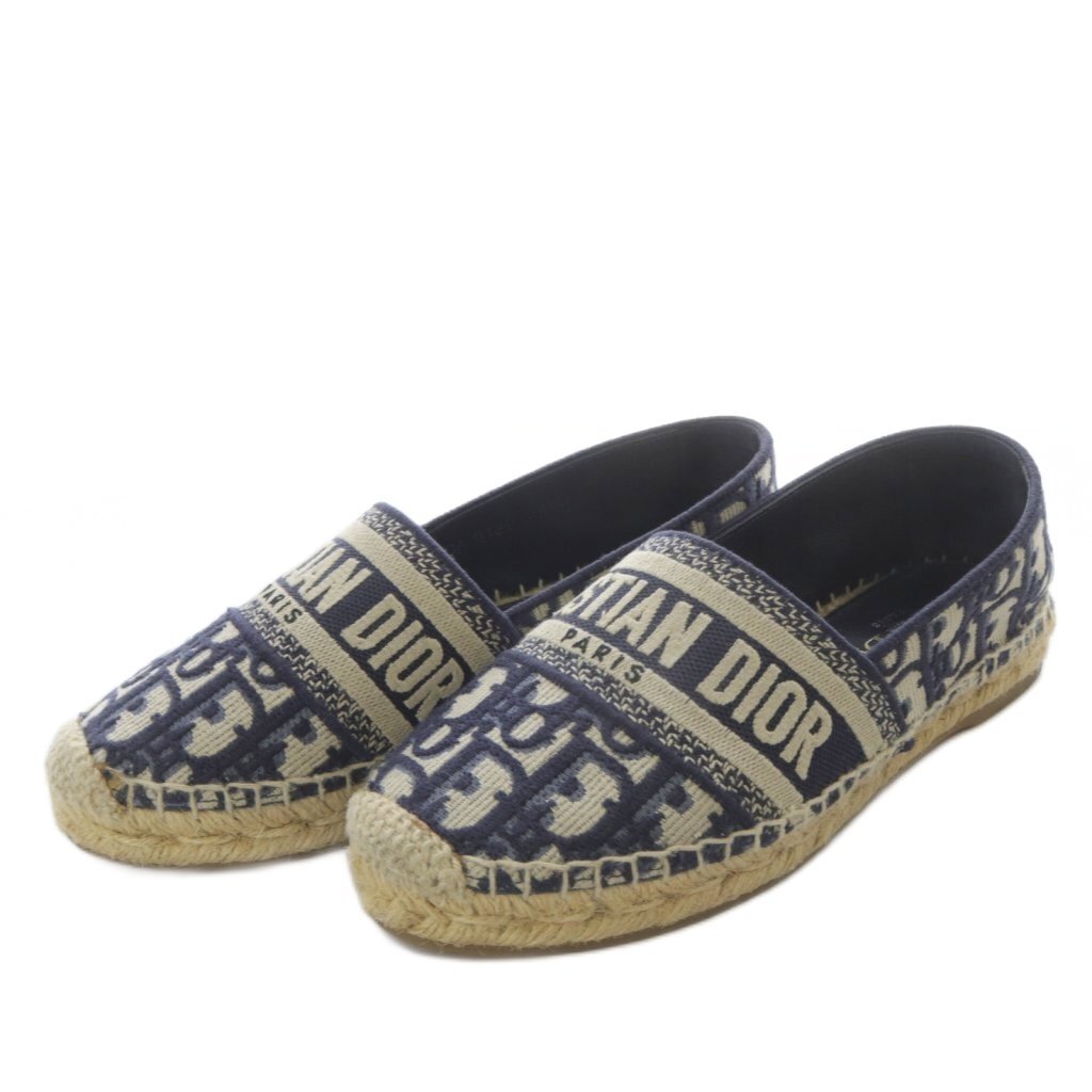 ディオール Dior グランヴィル Granville エスパドリーユ オブリーク エンブロイダリー スリッポン キャンバス 34.5 ネイビー