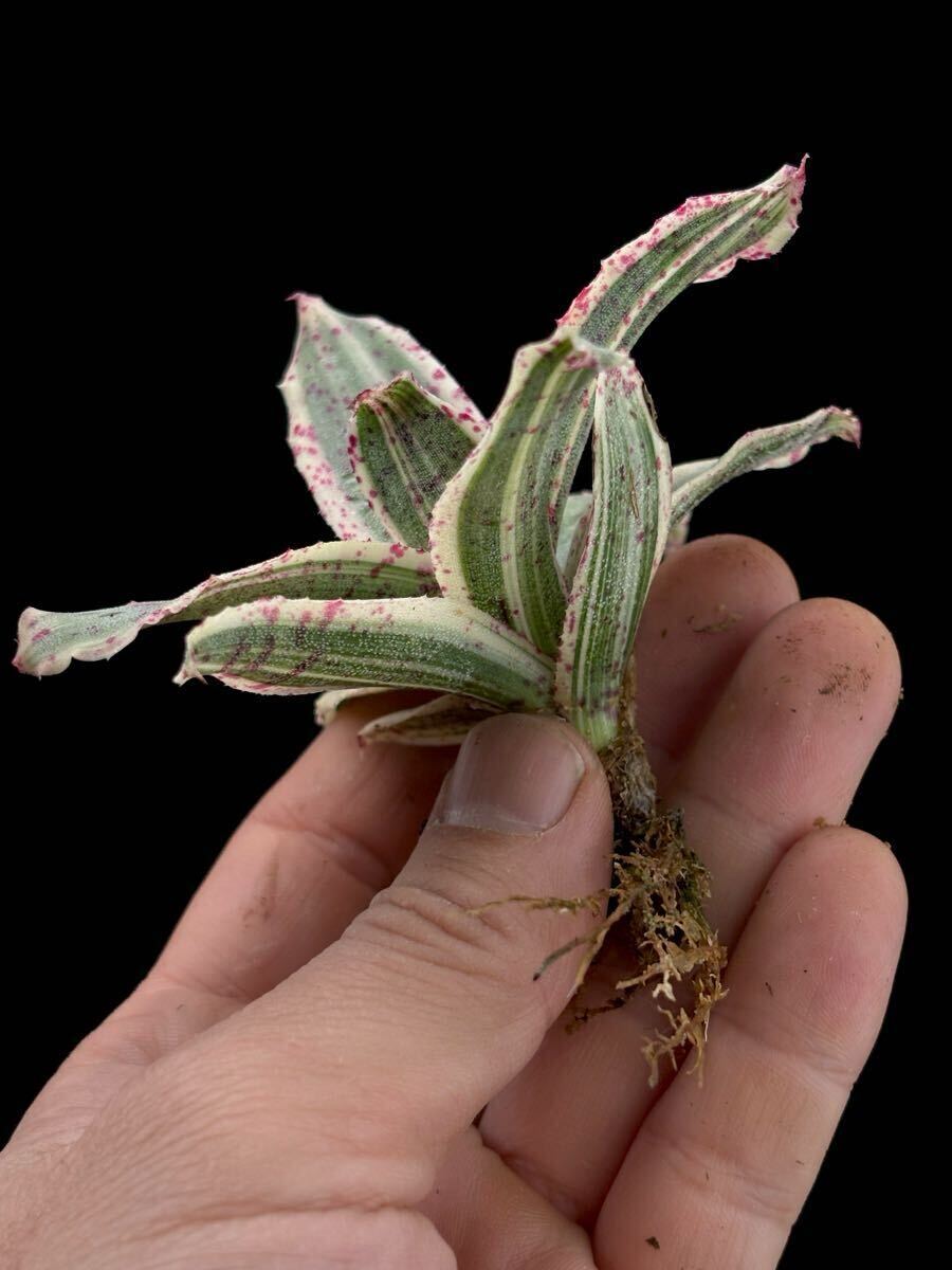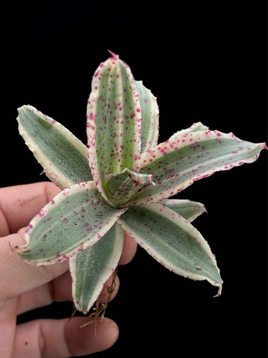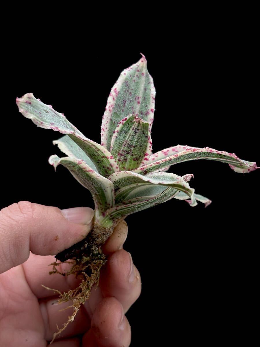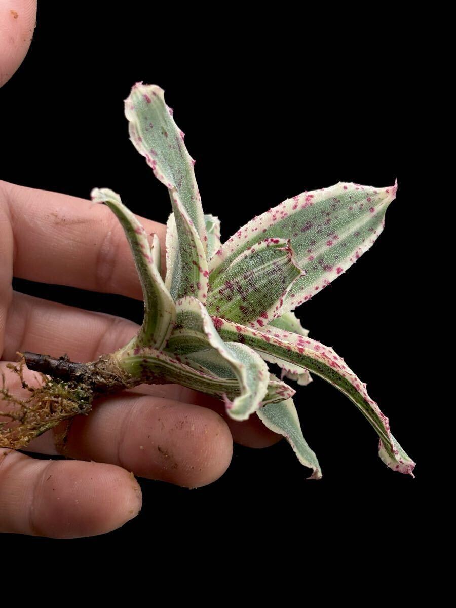 肉厚、斑入り、血飛沫のような模様。