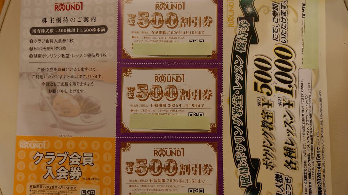 ブランド、メーカー:ラウンドワン株主優待割引券500円3枚