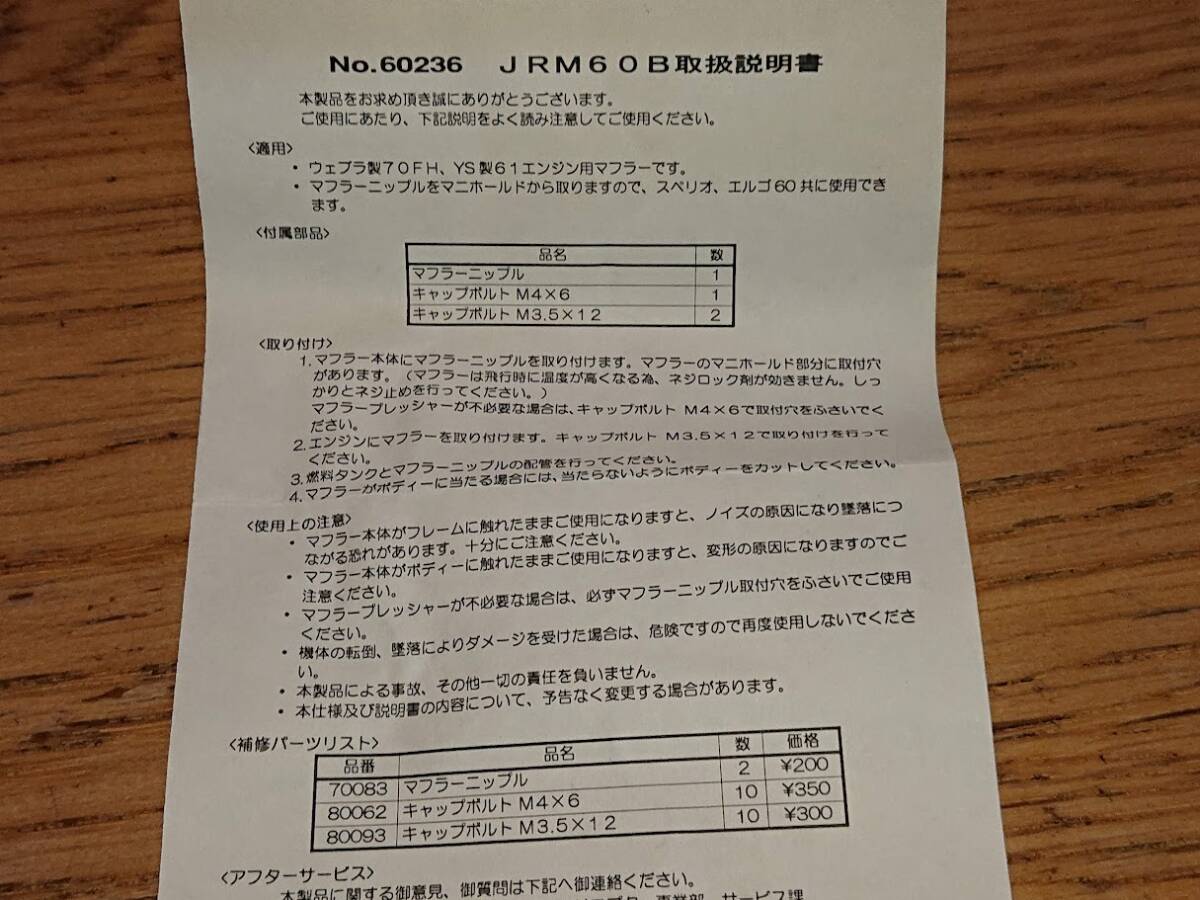 JR スペリオ、エルゴ60用マフラー JRM60B 未使用新品