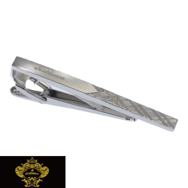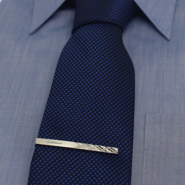 艶シルバーに格子チェックのコラボが美しい、スタイリッシュなネクタイピン。