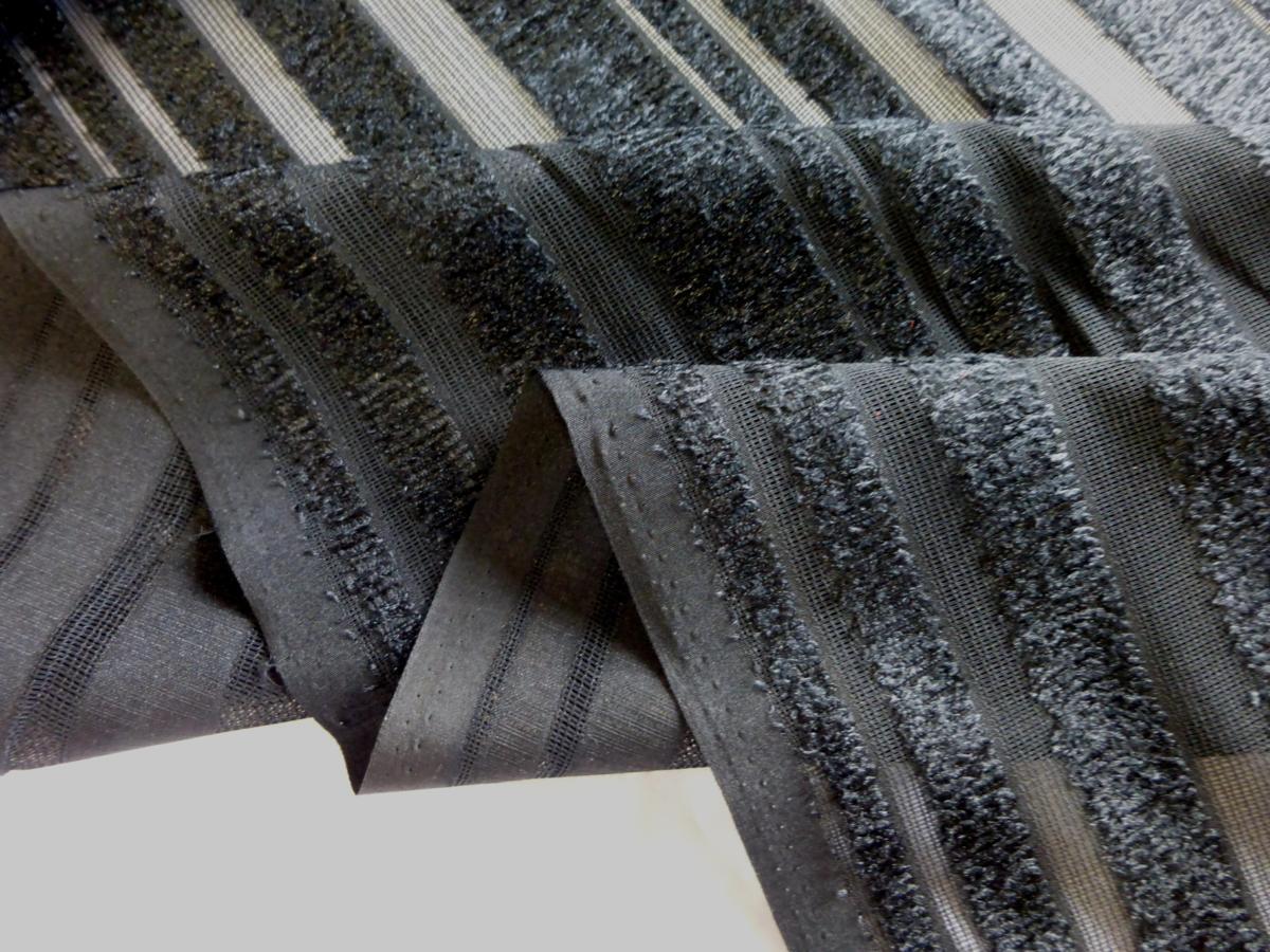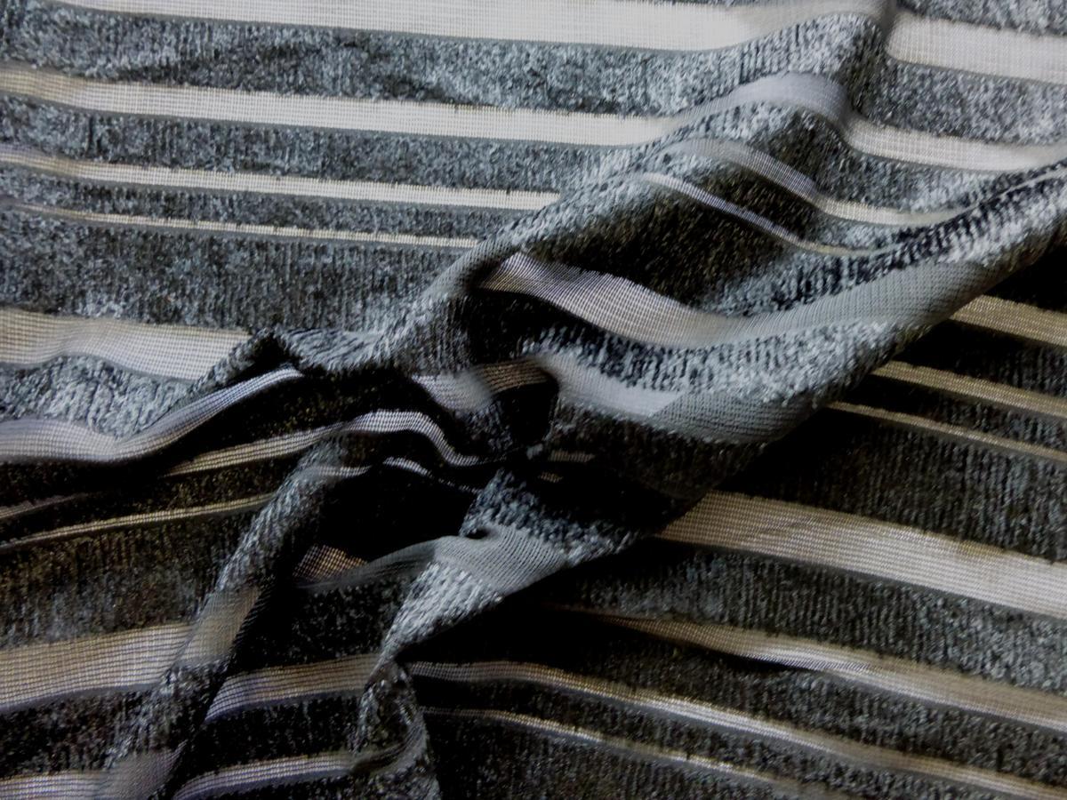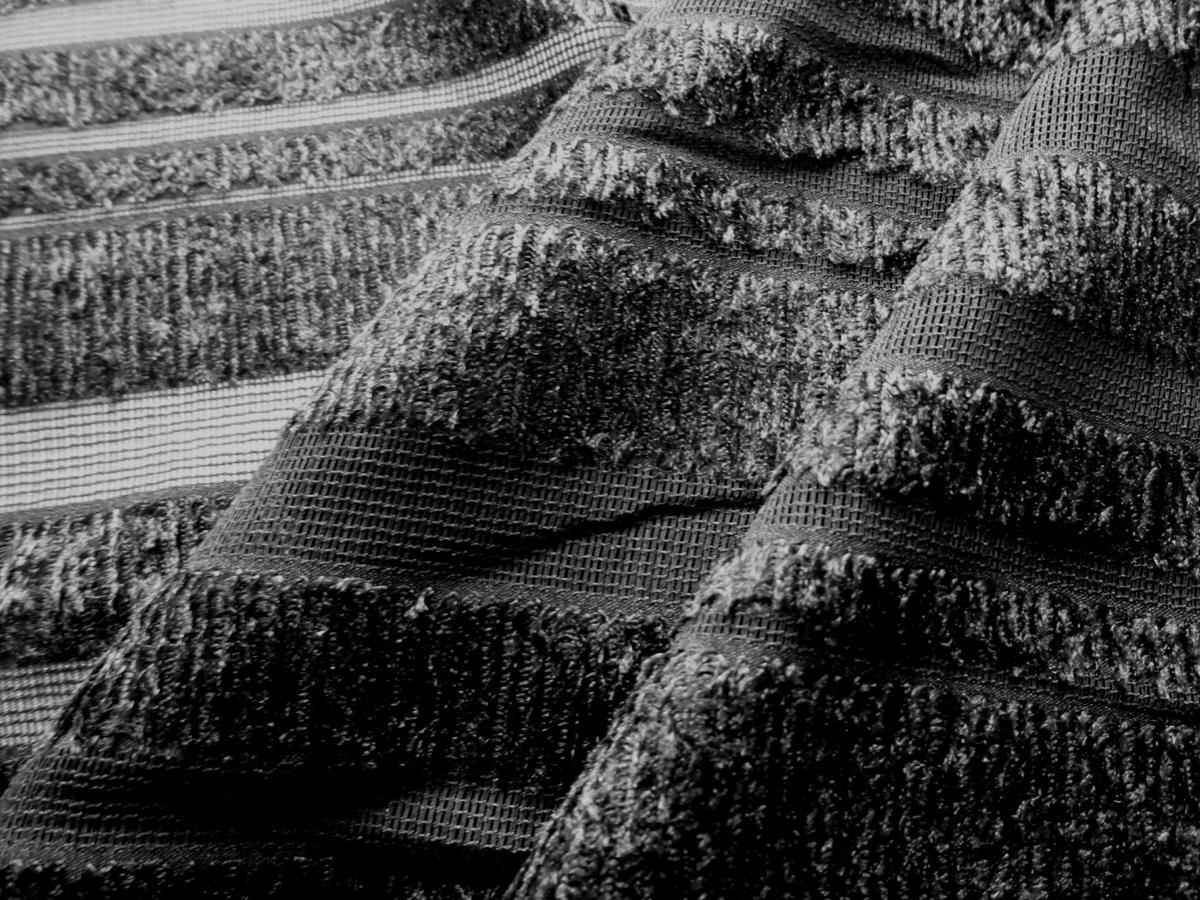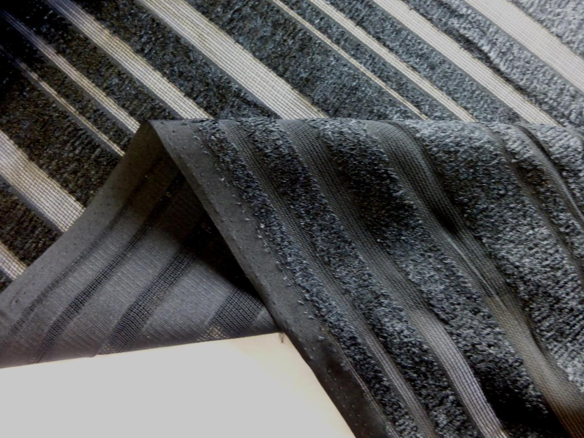 | 商品説明 | 突っ切りカットパイルのストライプ生地 表面的に凹凸感の生地です ネットメッシュのベース生地にタオルのような突っ切りパイルを織り込んであります ストライプ柄が立体的に見え、とても映えます ジャケットやドレスなどに最適 生地も染色も全て日本国内製造品です 幅108cm×長さ5m 価格は長さ5mの価格です |