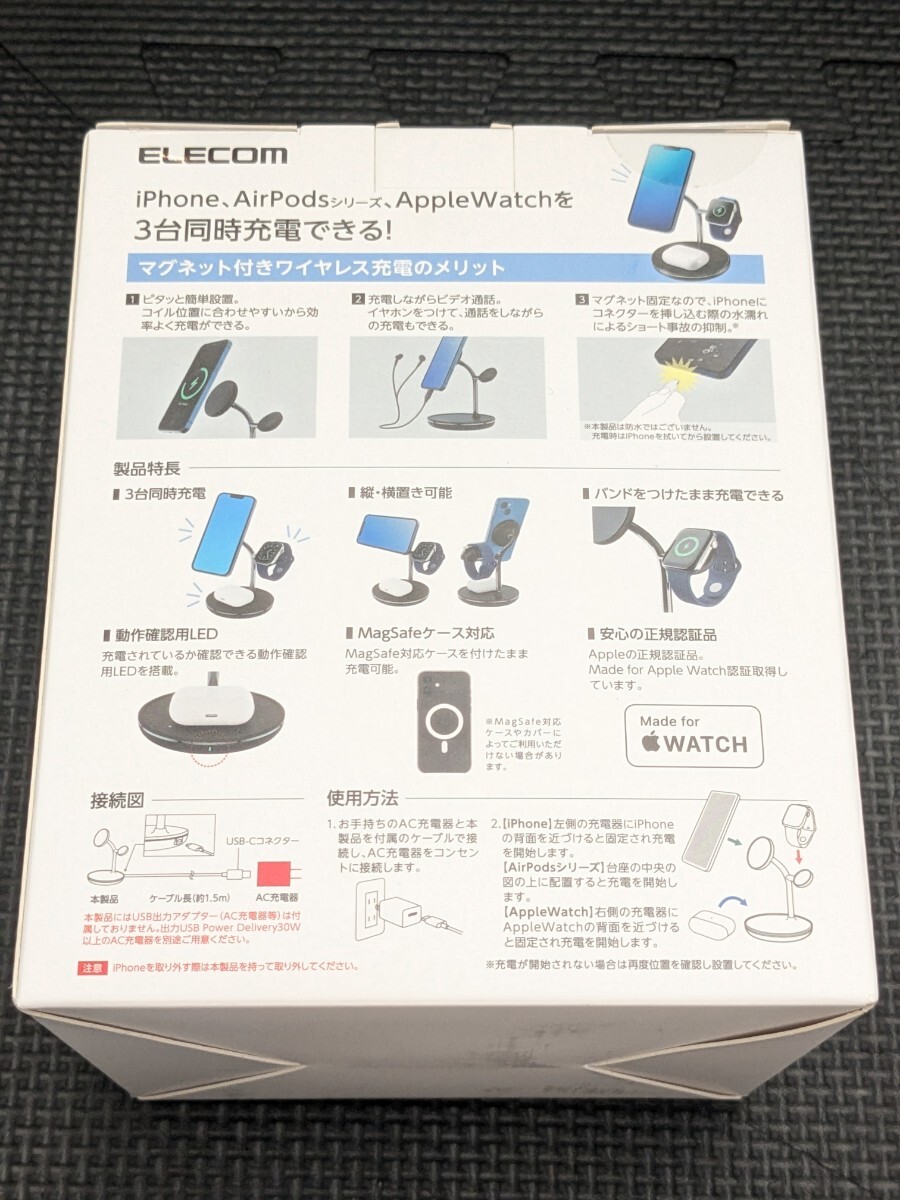 ◎0711u2025 エレコム(ELECOM) ワイヤレス充電器 3in1 3台同時充電 マグネット内蔵 7.5W+5W ブラック W-MS04BK