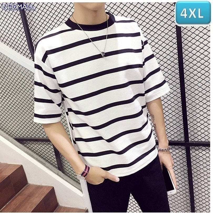 春夏にピッタリ ☆ 丸首 半袖 ボーダー Tシャツ【306】ホワイト 4XLサイズ トップス お洒落 シンプル 春夏
