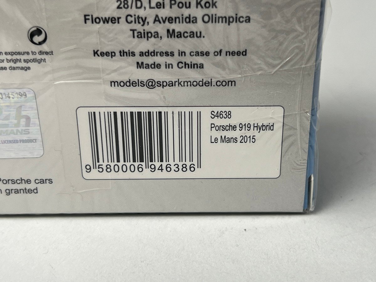 ● SPARK スパーク 1/43 Porsche ポルシェ 919 Hybrid Porsche Team LMP1 HY 2nd Le Mans ルマン 2015 #17 S4638 ●
