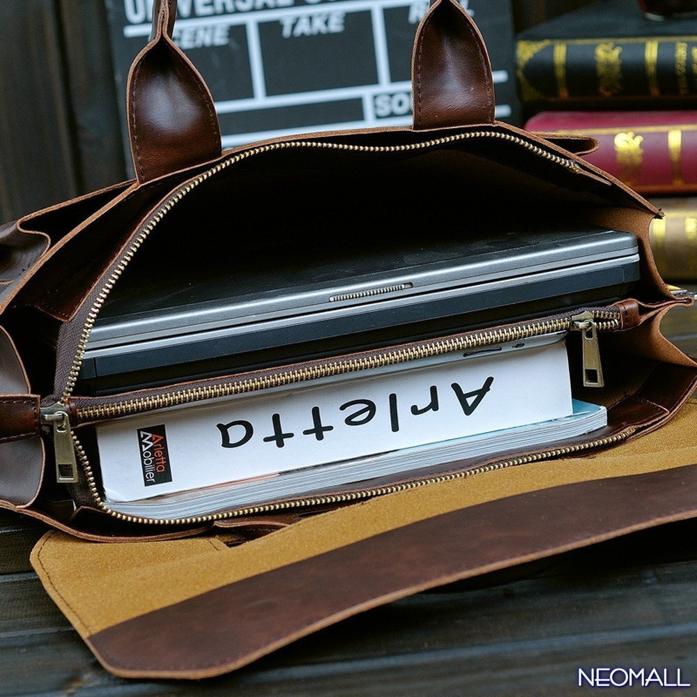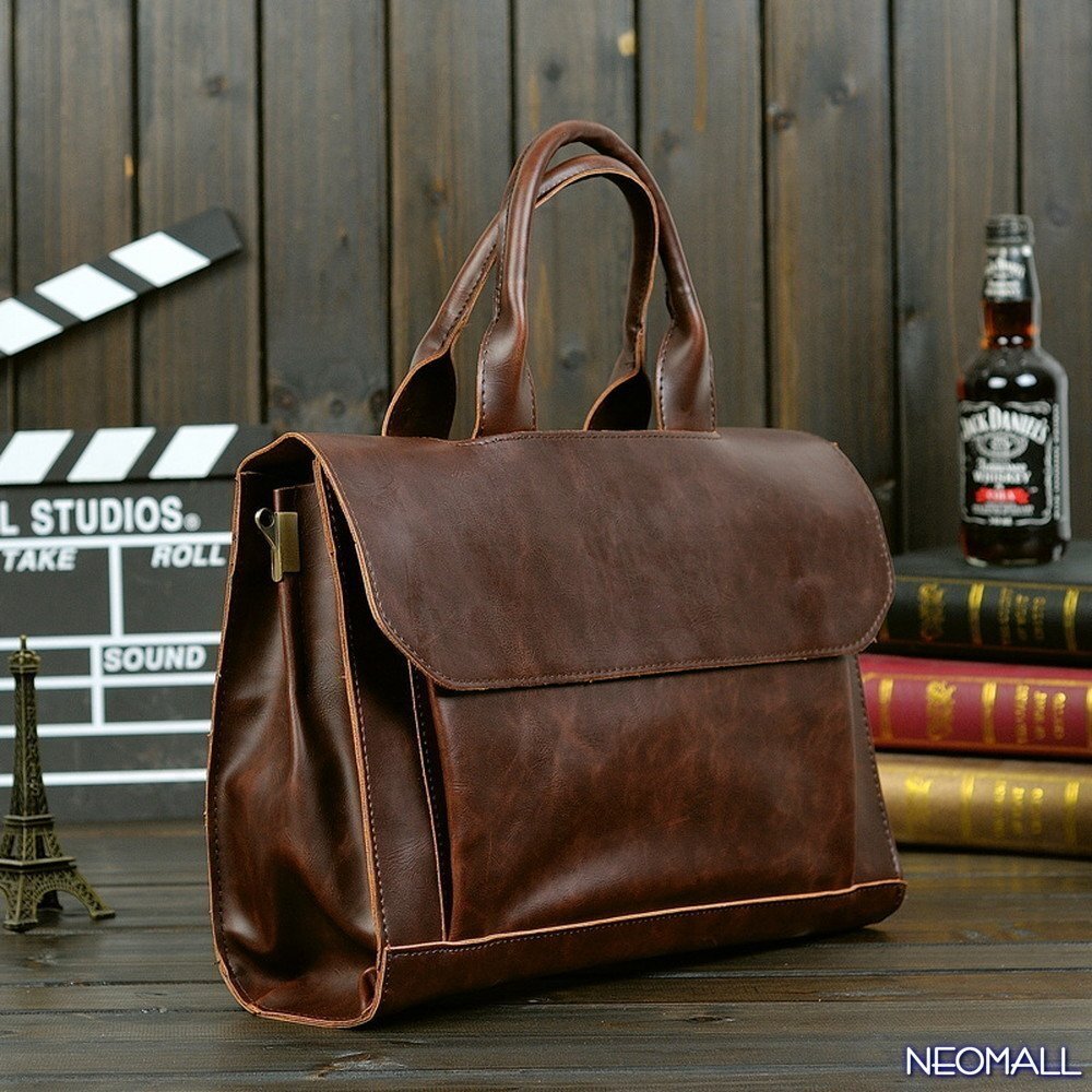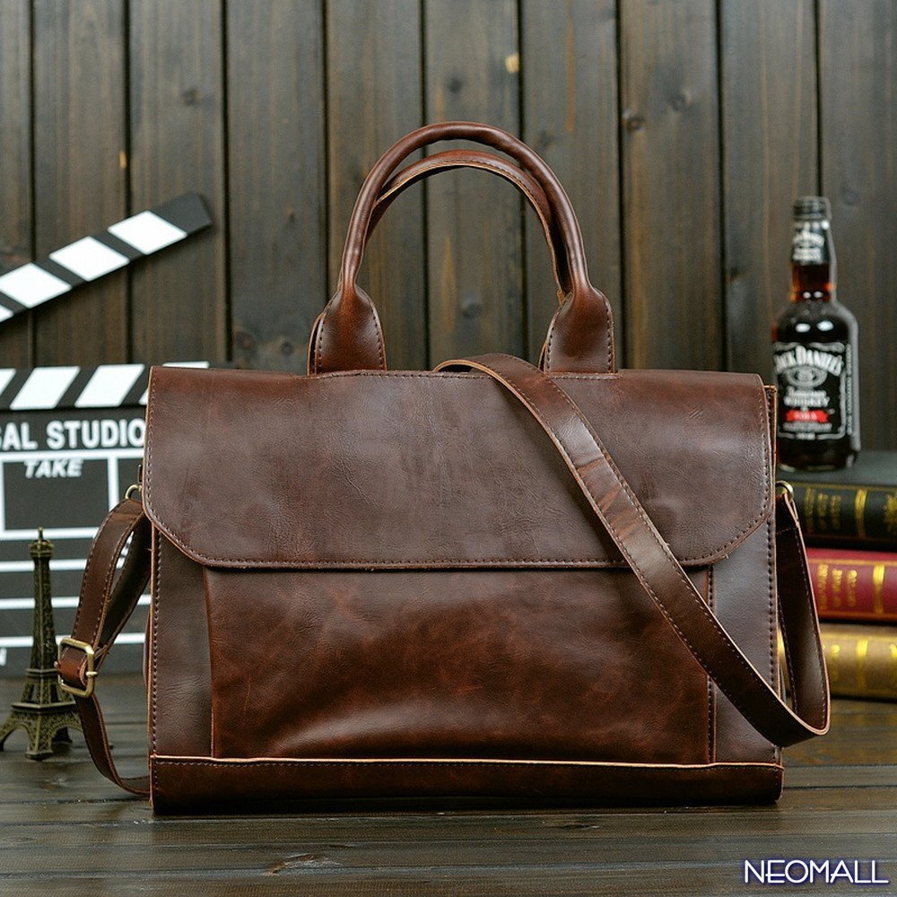 お買得☆ 新品 メンズ 高級PUレザー ビジネスバッグ【583】ブラウン ブリーフケース ショルダー スクエア 横型 大人気 上質 質感◎ 未使用