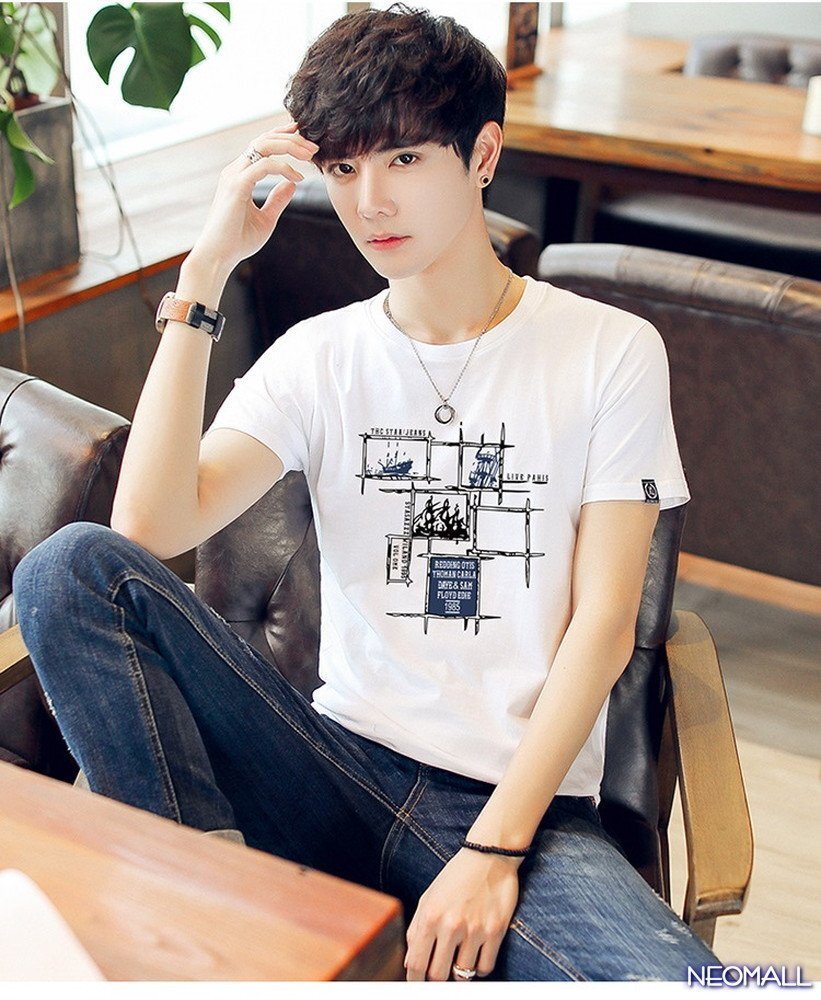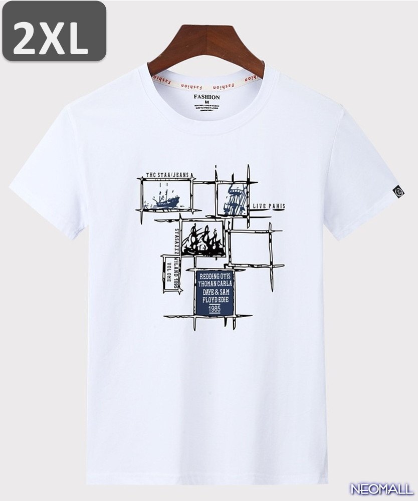夏の定番 ☆ 丸首 半袖 Tシャツ【461】 ホワイト 2XLサイズ トップス シャツ シンプル イラスト デザイン 春夏