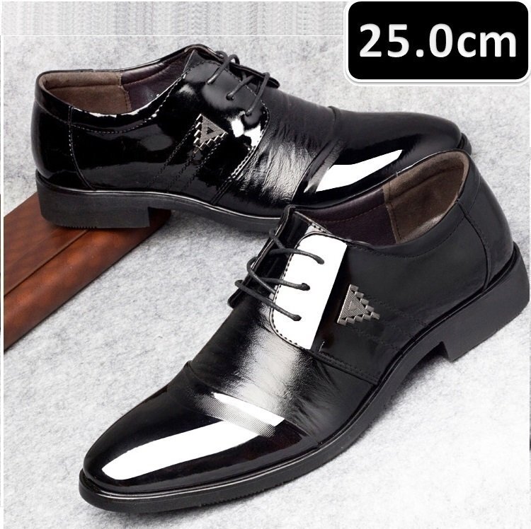 メンズ ビジネス レザー シューズ ブラック サイズ 25.0cm 革靴 靴 カジュアル 屈曲性 通勤 軽量 柔らかい 新品 【apa-158】