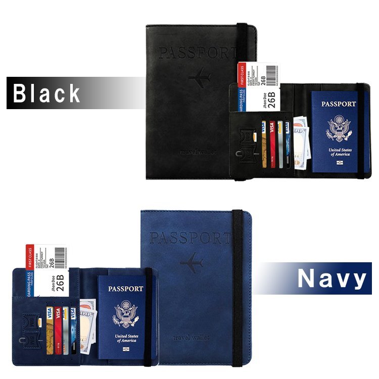 ◆パスポートケース カード入れ スキミング防止 PUレザー カードケース パスポートカバー 大容量 マルチカードケース 航空券入れ 海外旅行 出張 トラベルウォレット【ブラック】PUPC71G