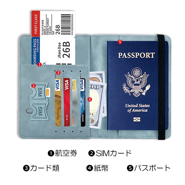 複数のポケットがついているので、パスポートだけでなく、航空券、紙幣、カード類、SIMカードなども一緒に収納することができます。