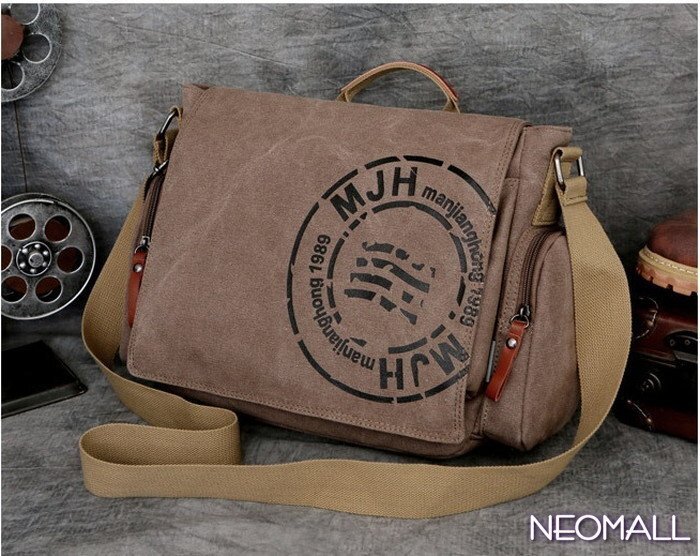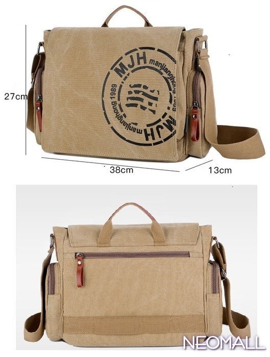 大容量 メッセンジャーバッグ ブラウン【871】 ショルダーバッグ 斜め掛け キャンバス 帆布 メンズ 学生 通学 バイク アウトドア