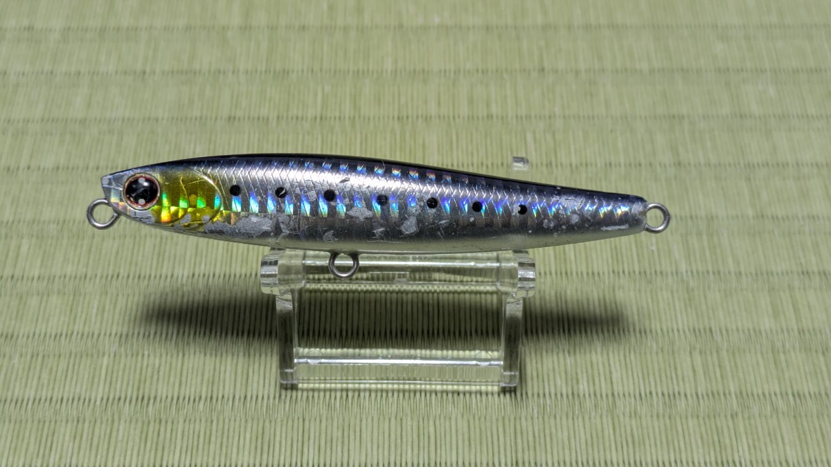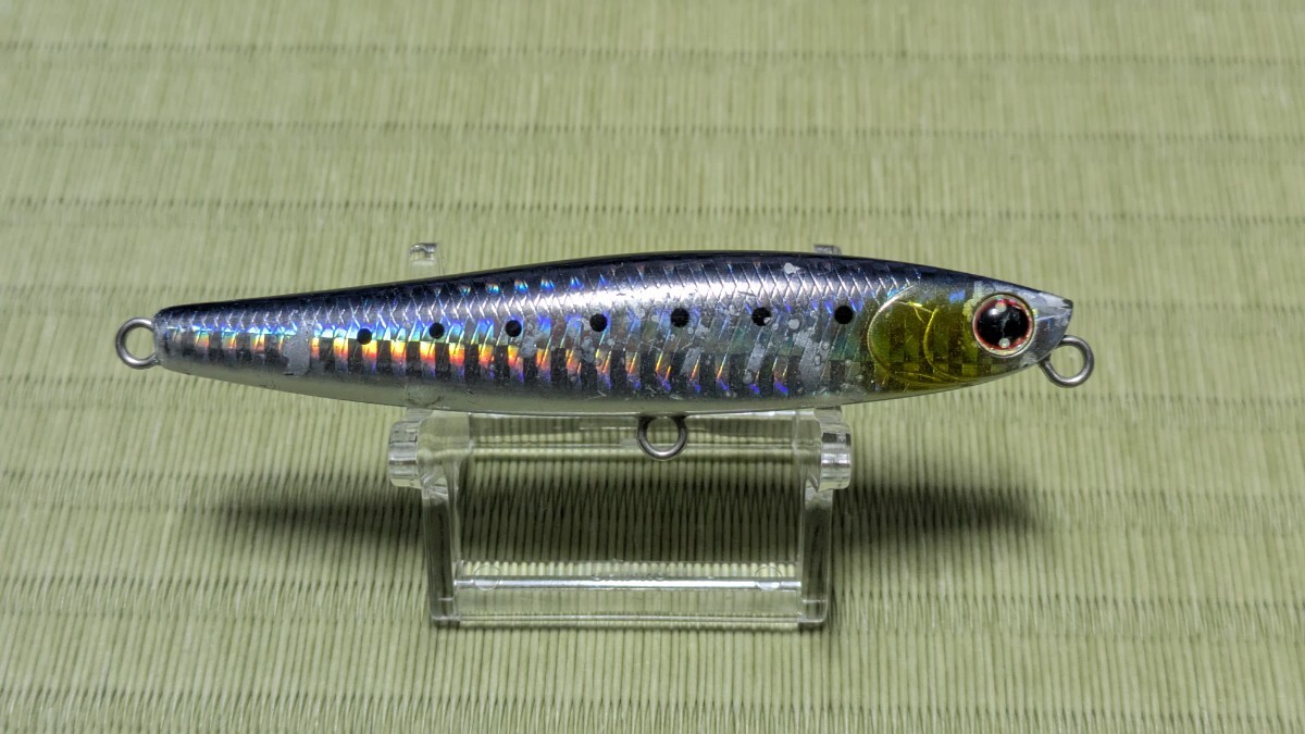『イナッコ、トウゴロウイワシ、カタクチイワシ、アユ』等どんなベイトにも対応できる万能タイプのシンキングペンシルです。また、固定重心仕様によりアクションレスポンスも高く、重量があるため水押しの強い流れでもアクションを破綻することなく泳ぎ切ります。しかも微妙な流の変化でスライドやフラつきを起こし「食わせの間」をルアーが自動的に演出。水押しの強いテールスライドアクションなので、アピール力が強いのも特徴です。