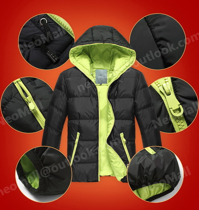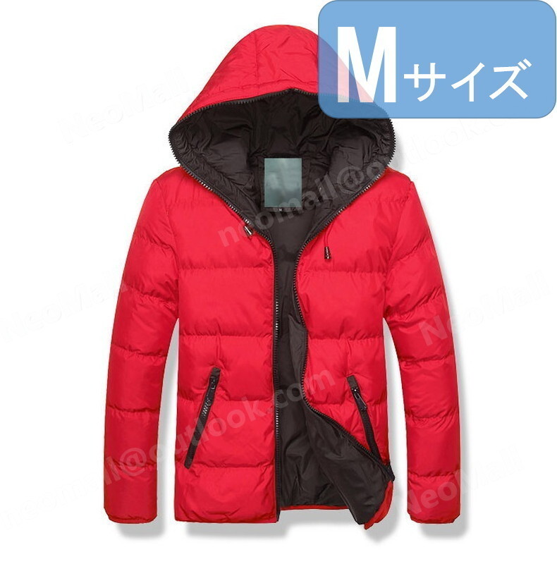 フード付き メンズ ダウン 004 レッド×ブラック Mサイズ 中綿ダウン 中綿ベスト キルティング アウター 防寒 秋冬 暖かい