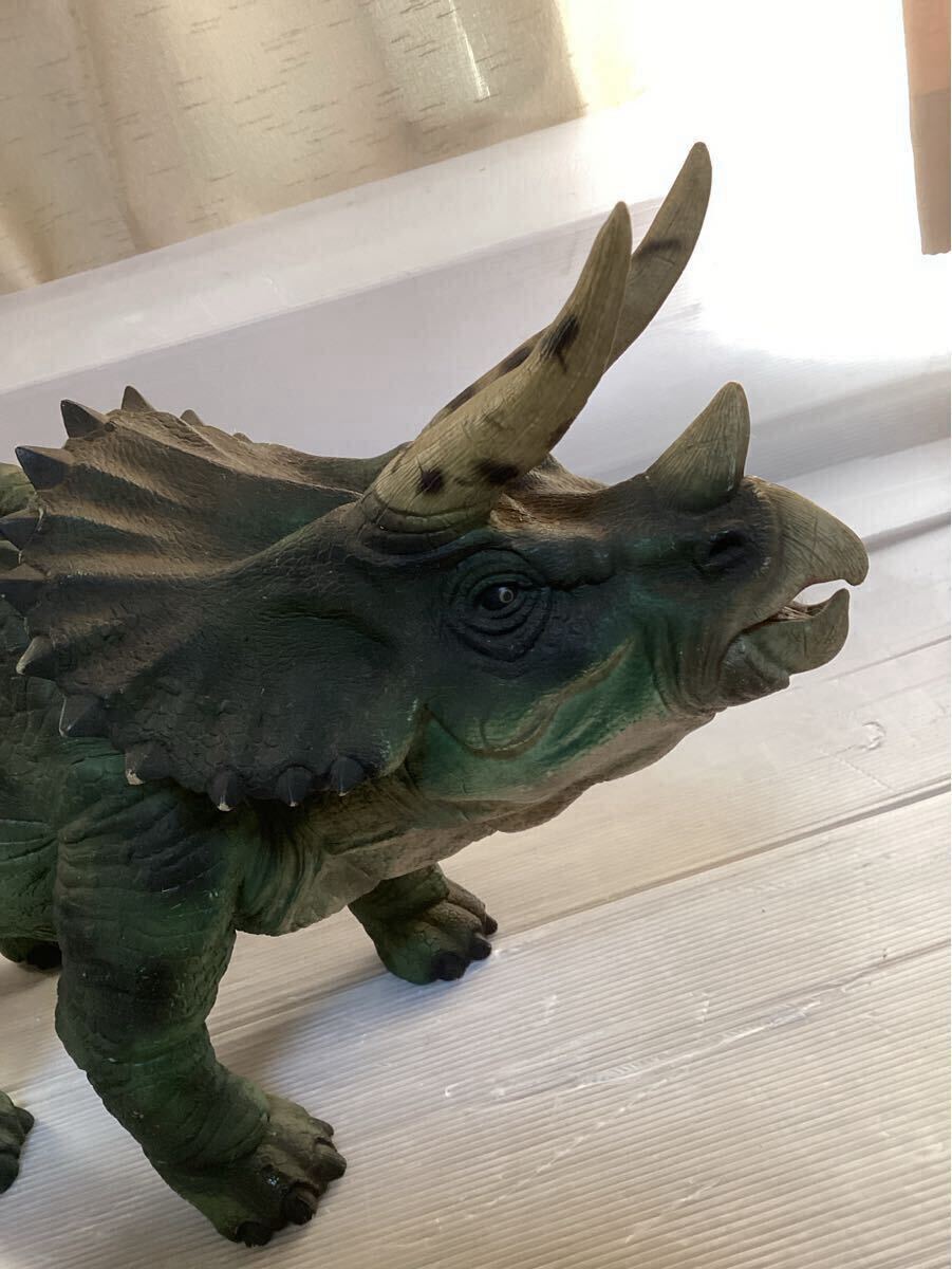 1990年代 ツクダホビー製の 1/10スケール トリケラトプス ソフビフィギュア(全長約56cm) です。