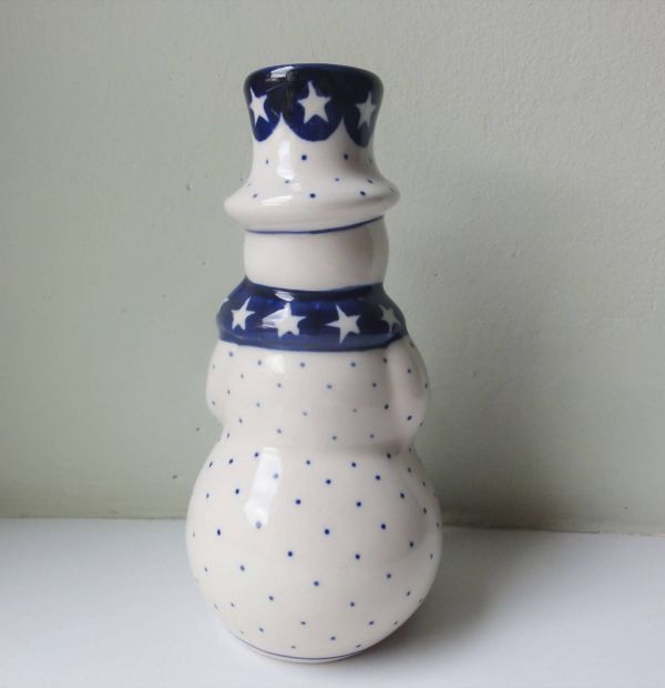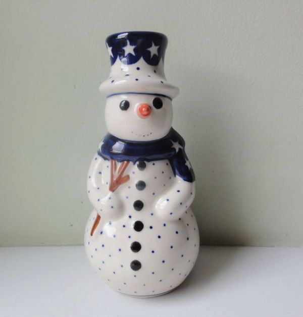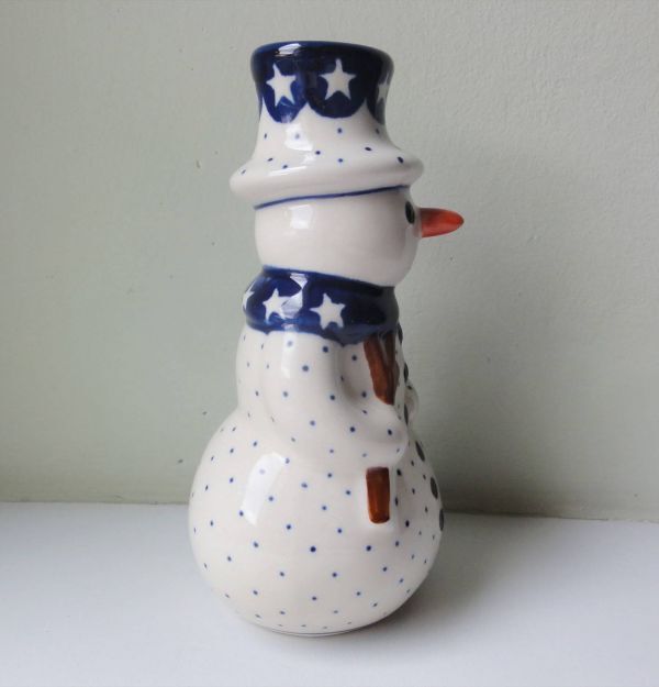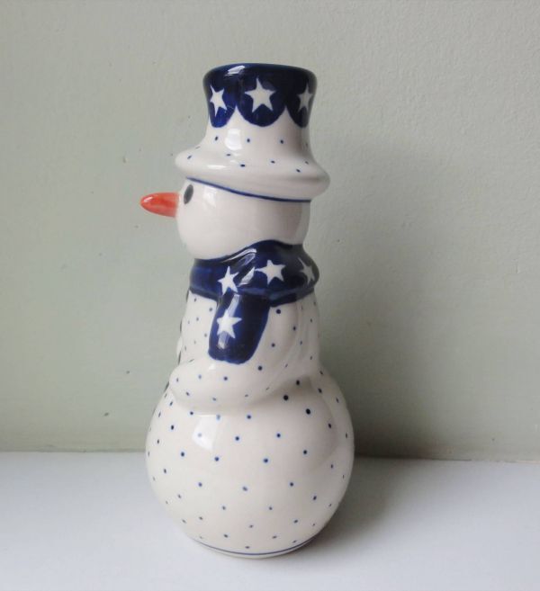 z870 ポーランド陶器 スノーマン キャンドルホルダー 星 雪だるま ポーリッシュポタリー 食器