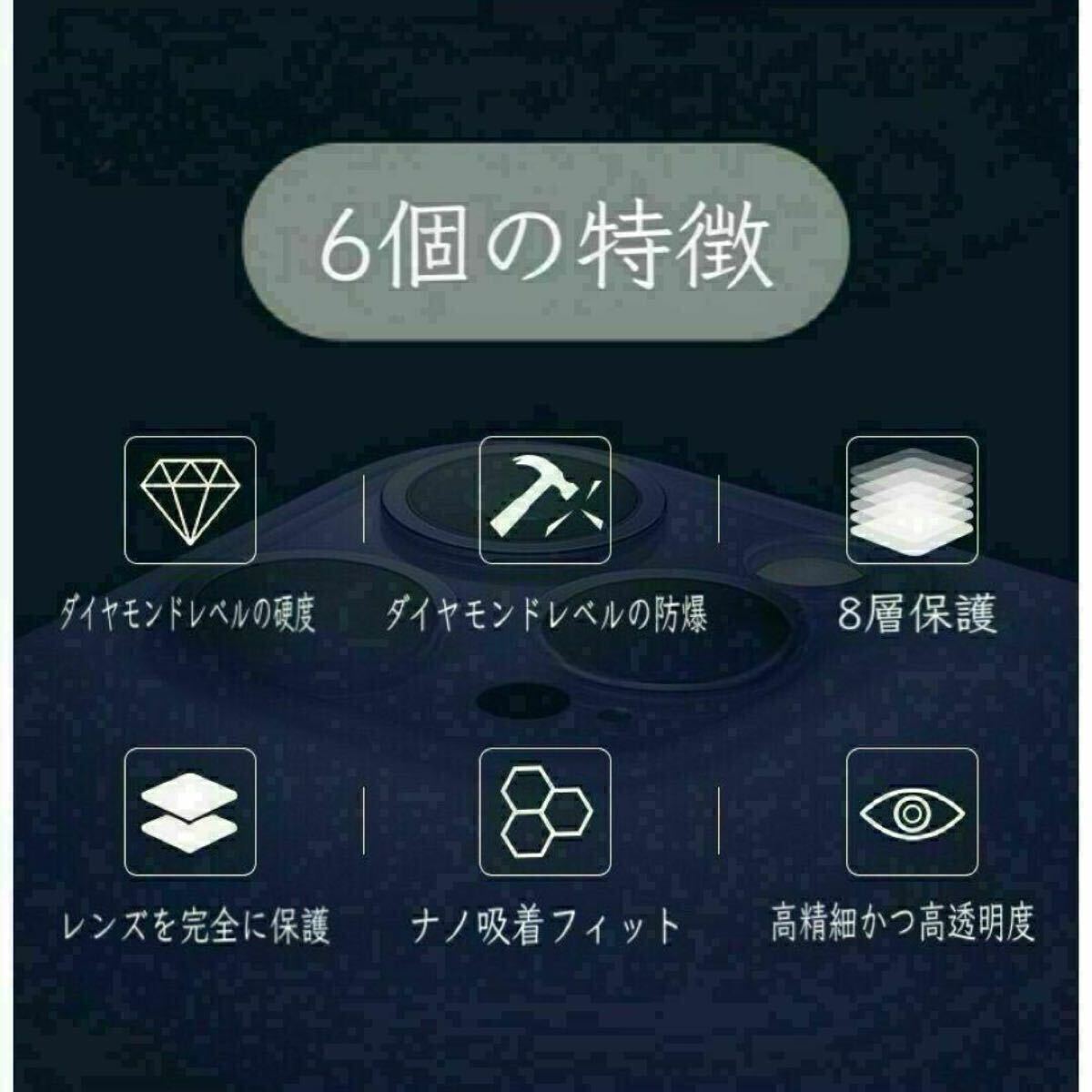 通常の保護フィルムよりも硬度9Hの強化ガラス素材を使用しており、iPhoneのカメラレンズを傷や汚れから守ります。高い透過率で写真や動画の画質を損なうことなくしっかりと保護することができます。360度完全保護であなたのiPhoneのカメラレンズをキズや汚れから守ります。耐久性のある素材で作られており、指紋や埃の付着も防ぎます。カメラのクオリティを損なうことなく、クリアで鮮明な写真を撮影できることが特徴です。