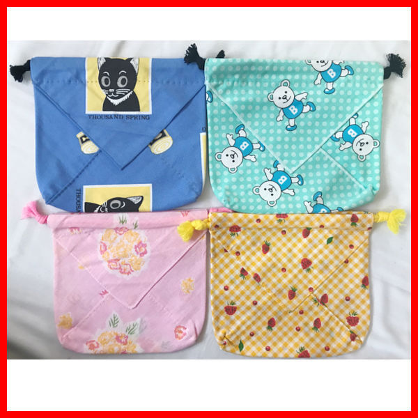 ★未使用品 ★品名= ハンドメイド巾着 ◎画像上段=ブルー系・グリーン系 ★平置きサイズ= [タテ:約17cm×ヨコ:約19cm] ◎画像下段=イエロー系 ★平置きサイズ= [タテ:約15.5cm×ヨコ:約17cm] ◎画像下段=ピンク系 ★平置きサイズ= [タテ:約16cm×ヨコ:約18cm] ★備考= 巾着両面の三角の生地の下はポケット仕様になっております。(画像⑥参照) ★備考= 巾着内側は表面と同じ柄の裏生地ありとなっております。(画像⑦参照) 【サイズ表記の注意】:お客様との測り方で多少の誤差は生じるかも分かりません。 ご理解の程、宜しくお願い致します。 | ||