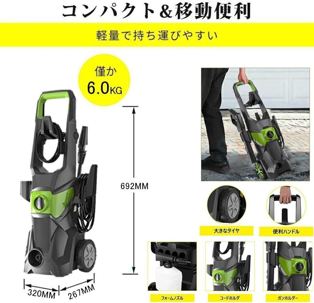 [高圧力] 強力な1800W高圧クリーナーは、17MPAの圧力と7L / Minの吐き水を提供できます