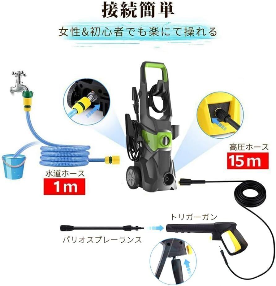 高圧洗浄機 業務用 1800W 17MPa 水道直結 自吸両用 高圧ホース16m 電源コード1.5m 二重絶縁 IPX5防水 家庭用 洗車 清掃 強力噴射 新品