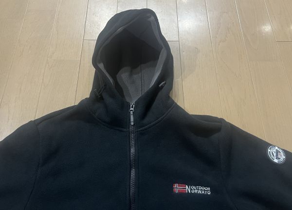 新品6376 北欧Outdoor Norway 寒冷地用極厚フリース 防風透湿メンブレン入り フード付き Lサイズ相当 ブラック