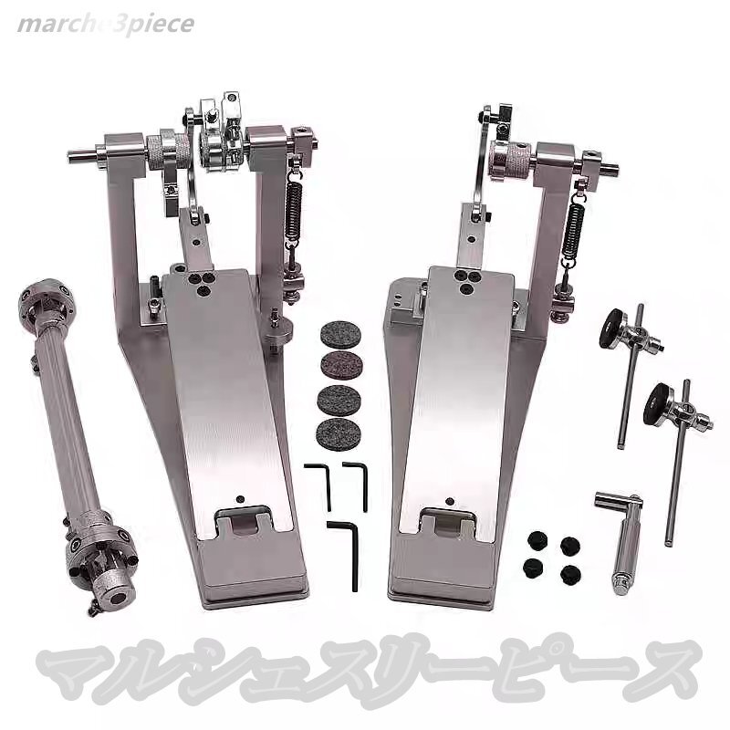 ダブルペダル ダブルキック シルバー ドラム バスドラム 練習用 フットペダル 楽器 アクセサリー