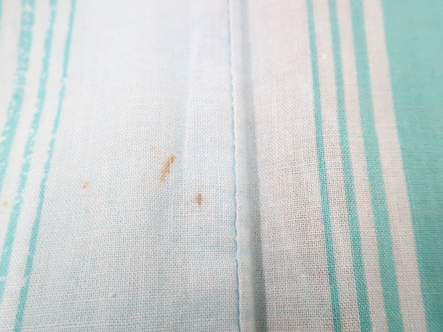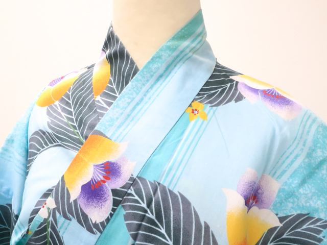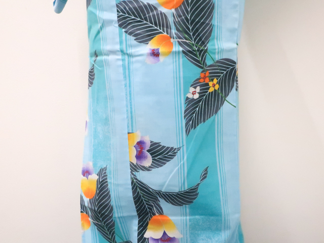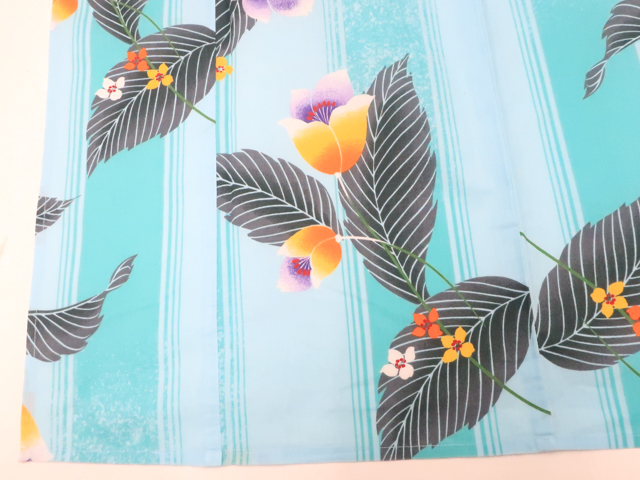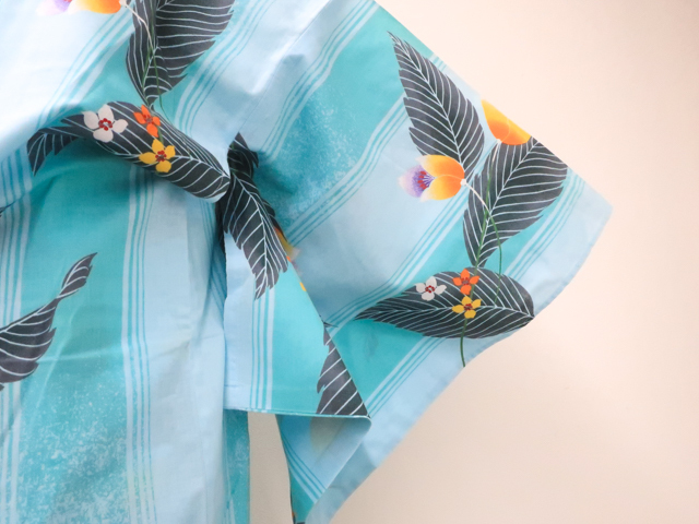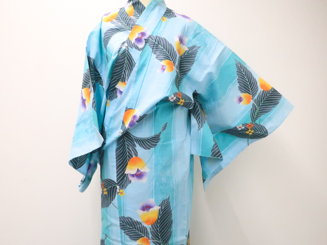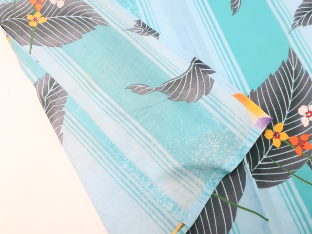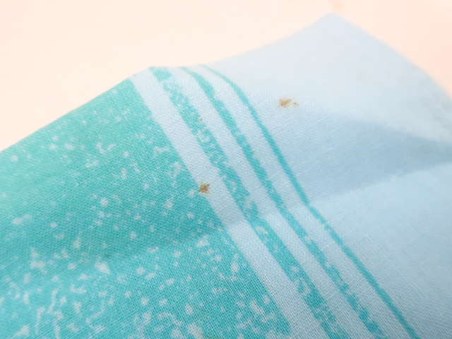 リサイクル商品のため、右脇、右後ろ袖、右背、衿にしみ汚れがございますが着用可能なお品です。 地色は 水色です。 1枚目の画像が近いお色かと思われます。 素材は綿です。 |