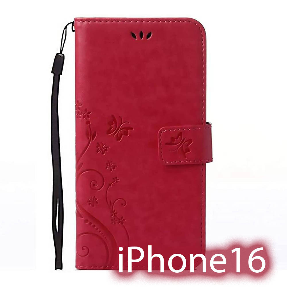 iPhone16 ケース 手帳型 かわいい iPhone 16 カバー 蝶 赤 レッド アイフォン16 おしゃれ スマホカバー レザー 送料無料 スマホケース 安い