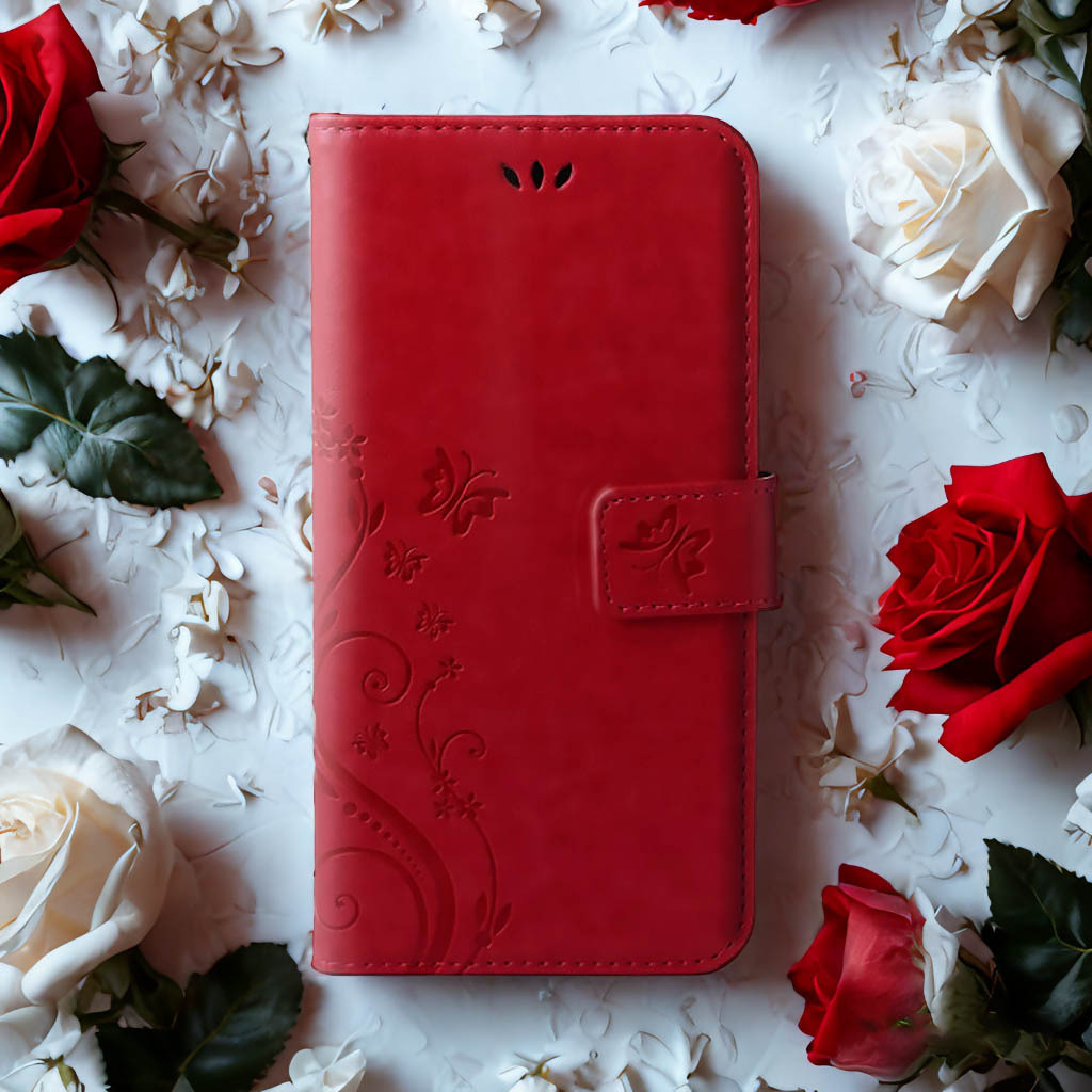 蝶と花が型押しされた 大人可愛い 手帳型スマホケース