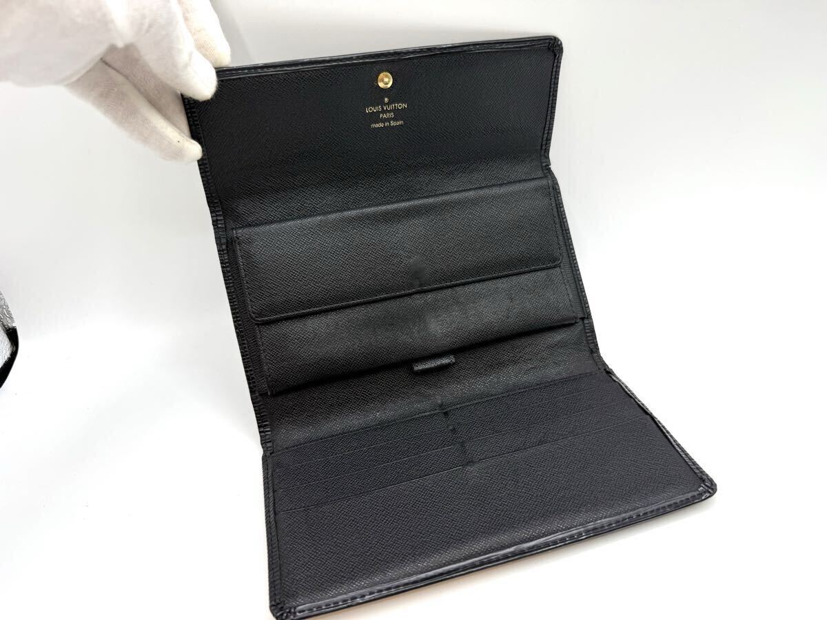 1096 極美品 LOUIS VUITTON ルイヴィトン M63382 エピ ポルトトレゾール インターナショナル 三つ折り 長財布 ウォレット ブラック系