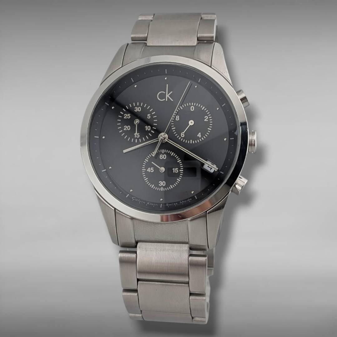 【新品電池・稼働】Calvin Kleinカルバンクライン K22371 30M/100FT ドーム型 クロノグラフ 腕時計 メンズ