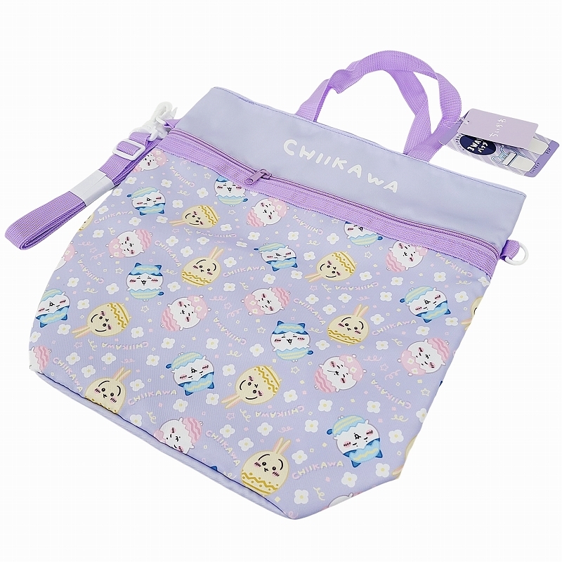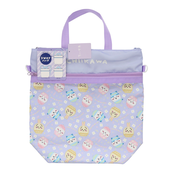 ちいかわ 3WAYバッグ パープル ハチワレ うさぎ 入園 入学 レッスンバッグ 通園 手提げ リュック ショルダー