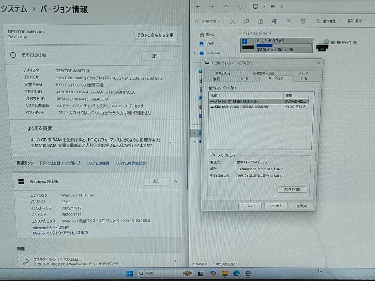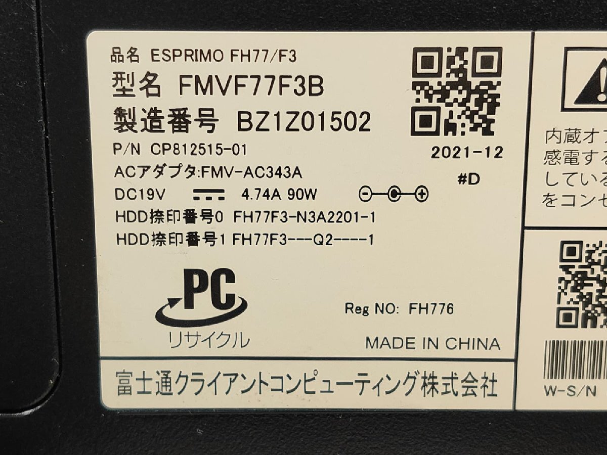 ●【難あり】富士通 FUJITSU ESPRIMO FH77/F3 / i7-1165G7 / 8GBメモリ / 256GB M.2 / 23.8型 / Windows 11 Home / 直接引取OK / ITS JAPAN